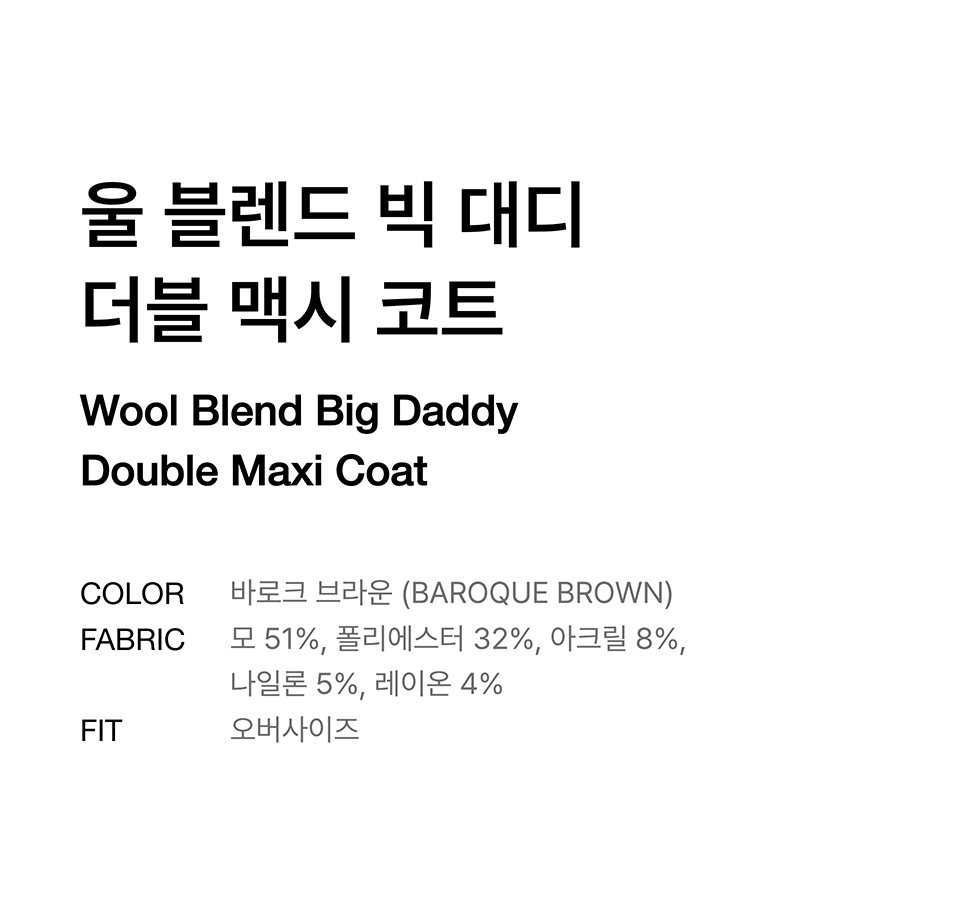 울 블렌드 빅 대디 더블 맥시 코트 [바로크 브라운]