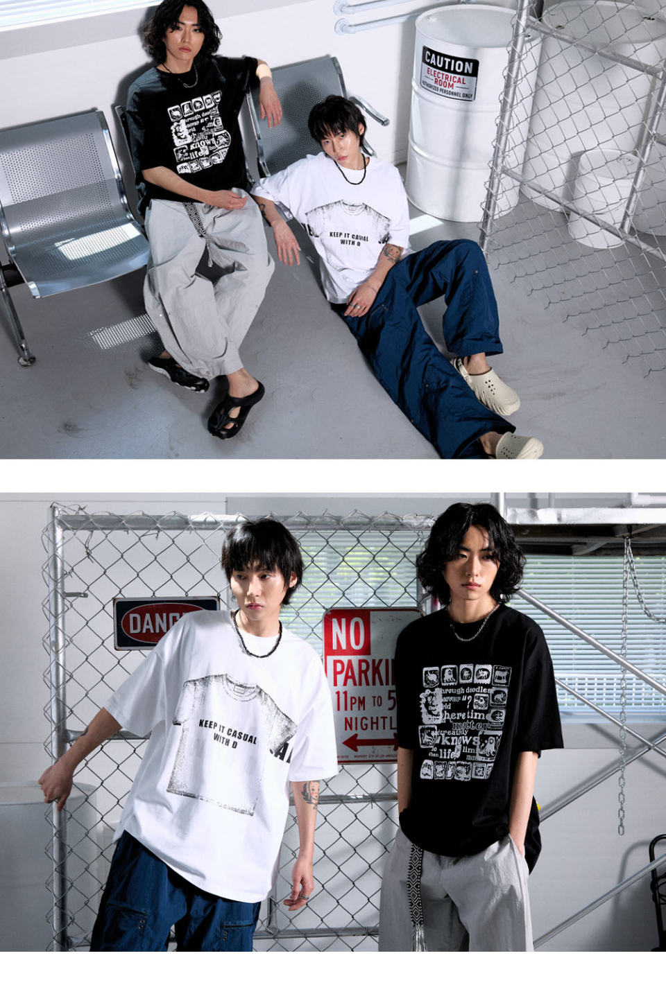 데미지 펑크 로고 티셔츠 [베이지]