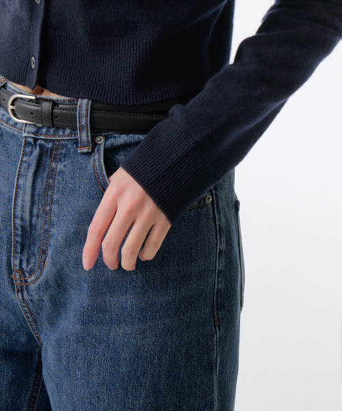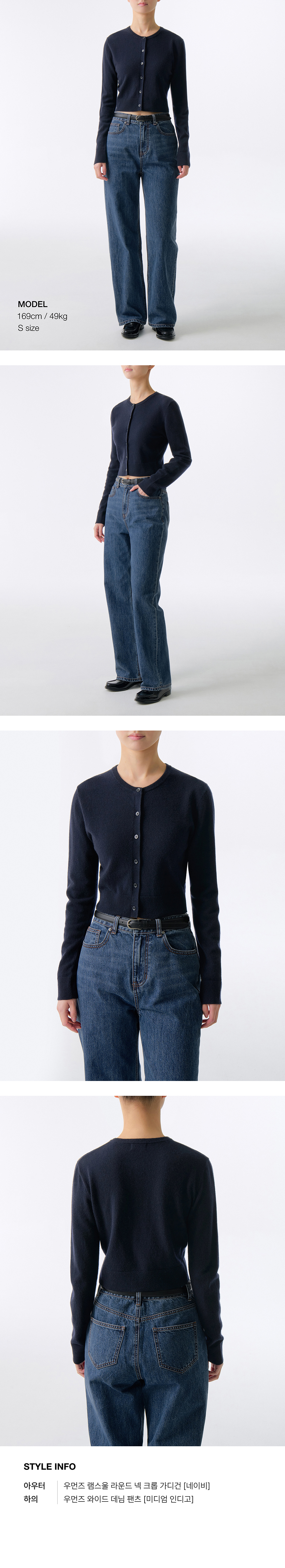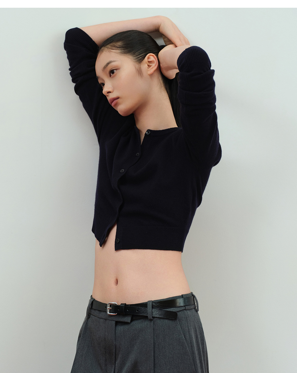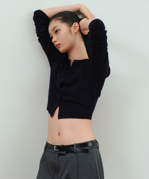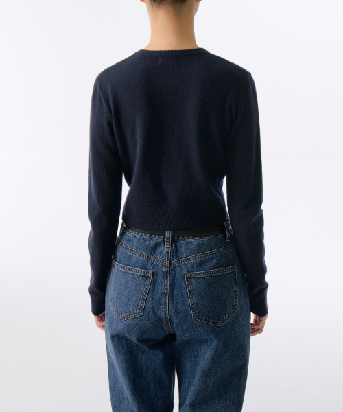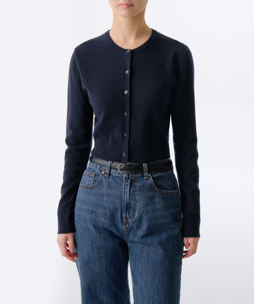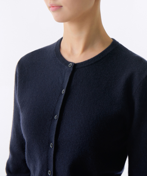 우먼즈 램스울 라운드 넥 크롭 가디건 [네이비]