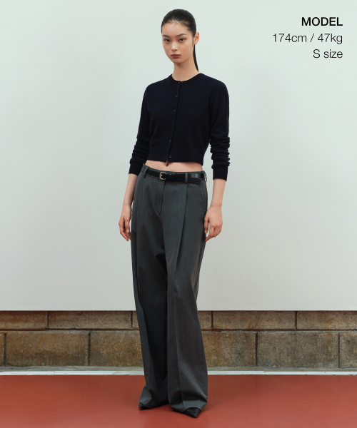 우먼즈 하이 웨이스트 와이드 히든 밴딩 슬랙스 [차콜 그레이]