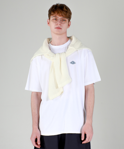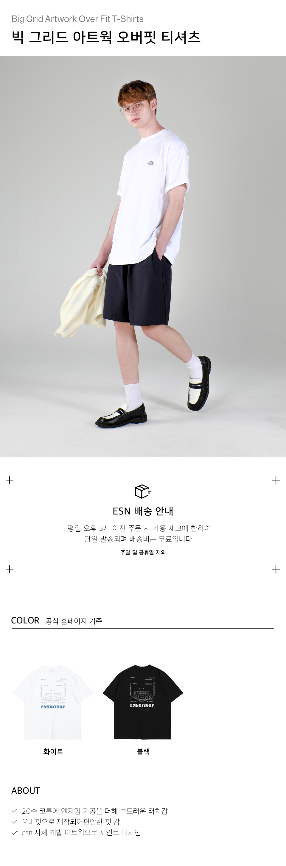 빅 그리드 아트웍 오버핏 티셔츠 화이트