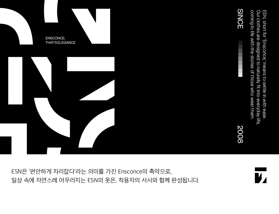 이에스엔(ESN)은 심플함과 모던함을 중심으로 트렌드를 대중적으로 해석하여 미니멀한 무드를 각각의 아이템에 풀어내며, 합리적인 가격으로 퀄리티 높은 제품을 소비자에게 제안하는 미니멀 컨템포러리 브랜드입니다.