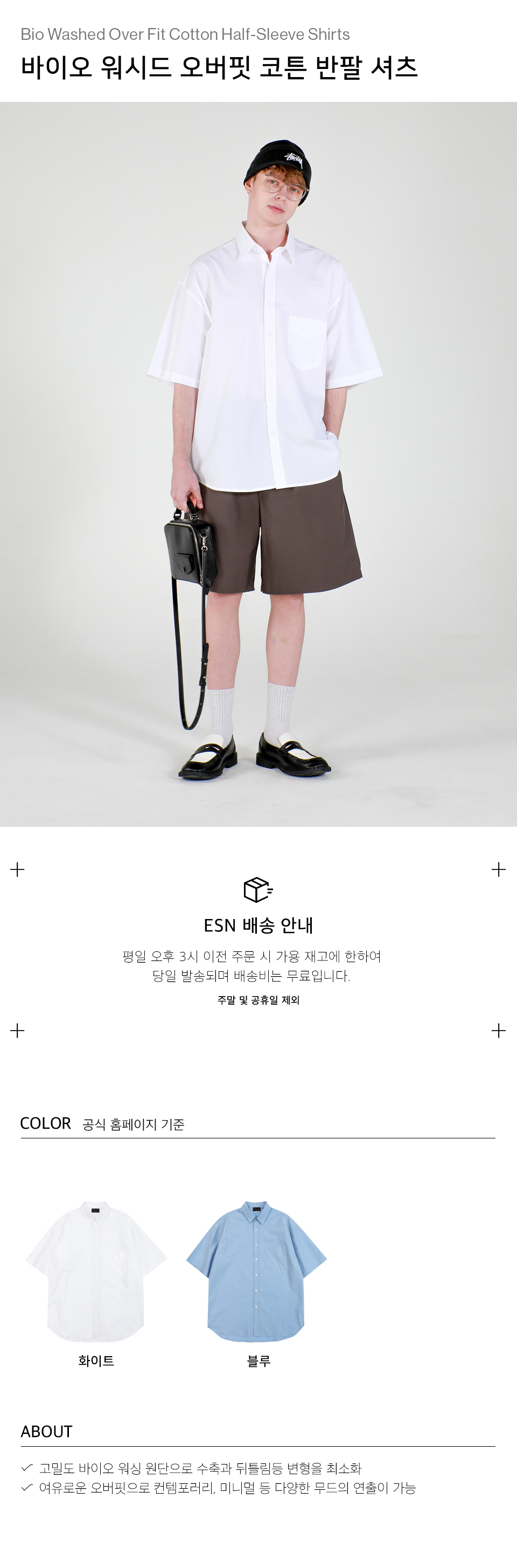 바이오 워시드 오버핏 코튼 반팔 셔츠 화이트