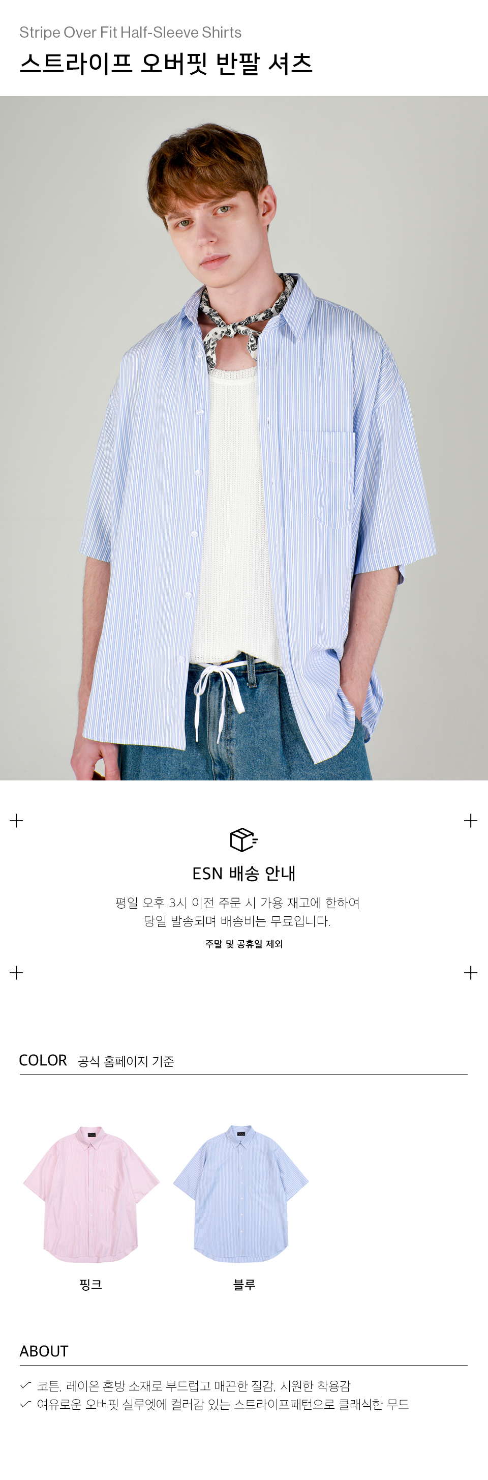 스트라이프 오버핏 반팔 셔츠 블루