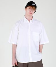 바이오 워시드 오버핏 코튼 반팔 셔츠 화이트