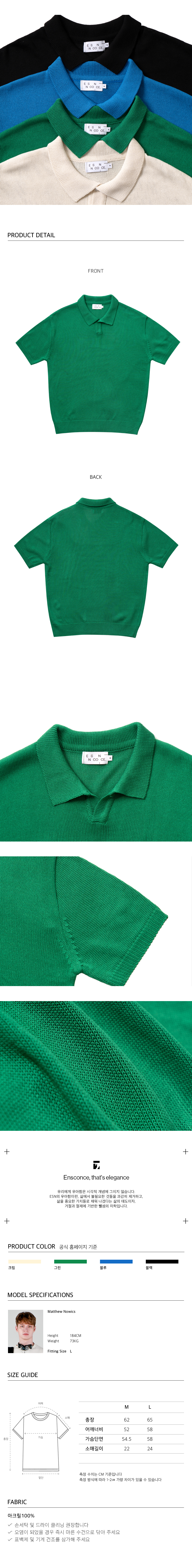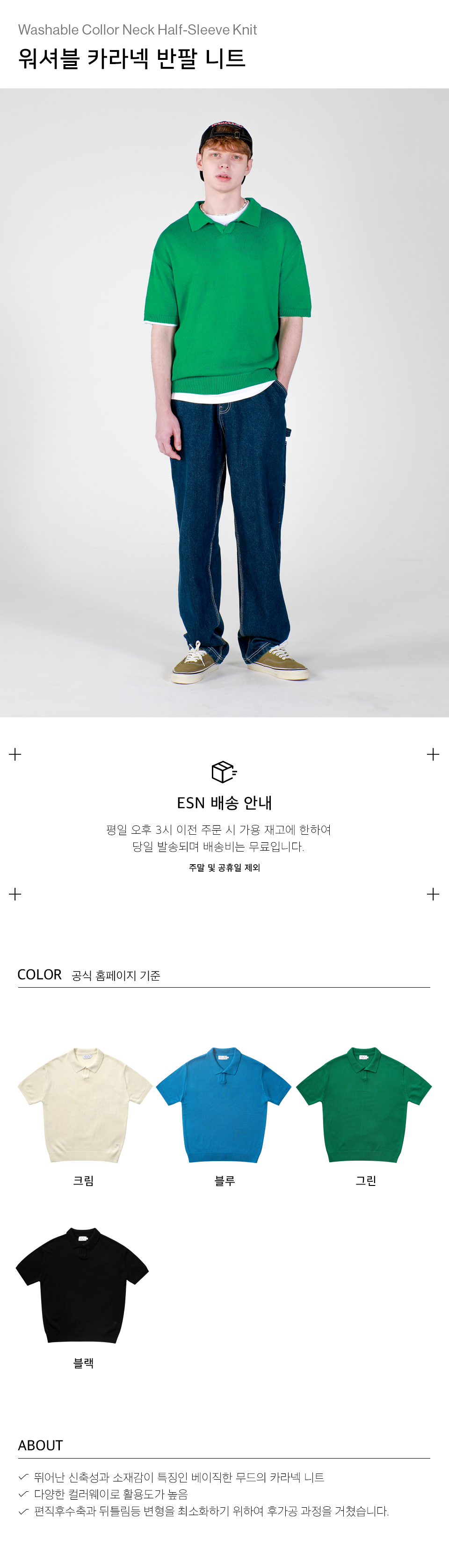 워셔블 카라넥 반팔 니트 그린