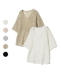 85-VIVAJ032 헤비 라운드 메쉬 니트 반팔 5 color