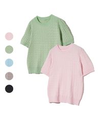85-VIVAJ037 케이블 크롭 라운드 니트 반팔 5 color