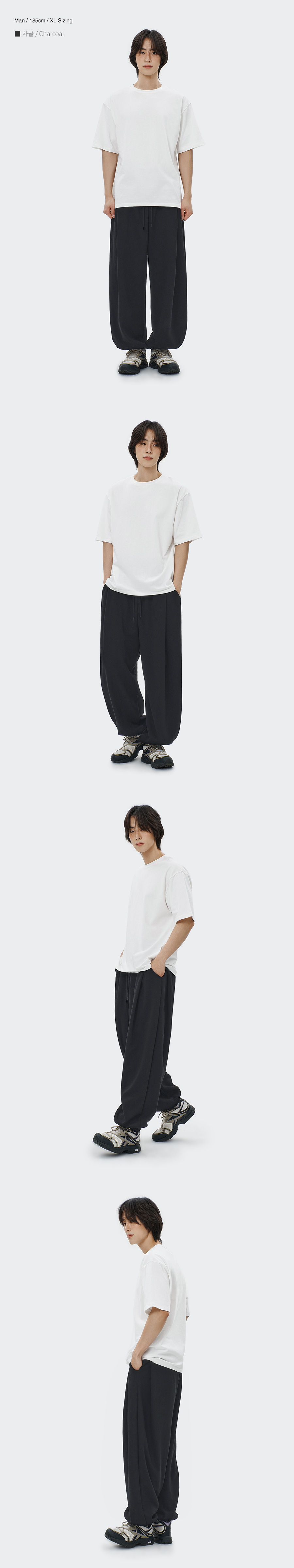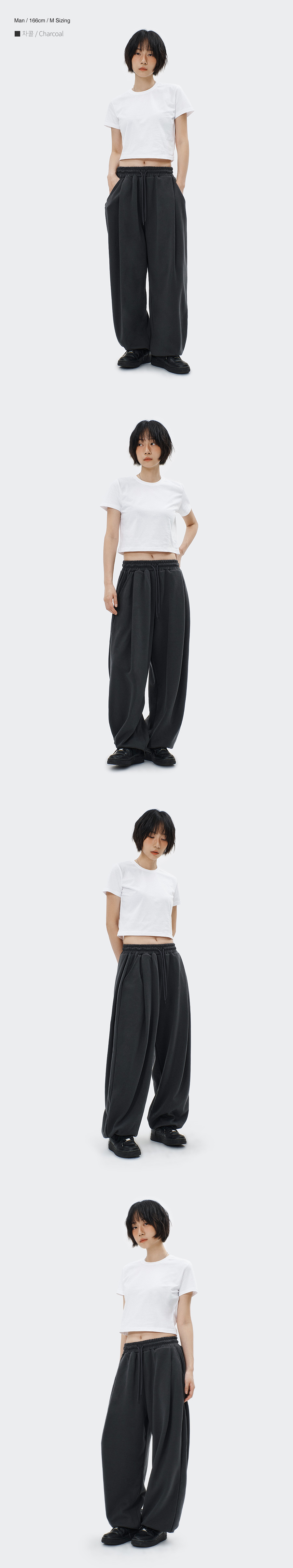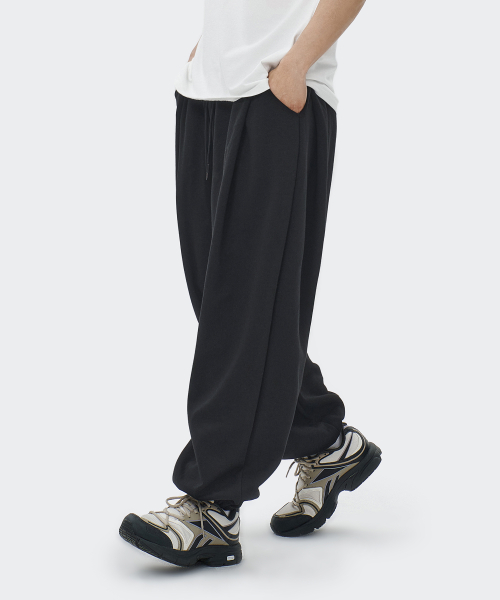 사이드 투턱 와이드 조거핏 트레이닝 스웨트 팬츠 - 차콜
