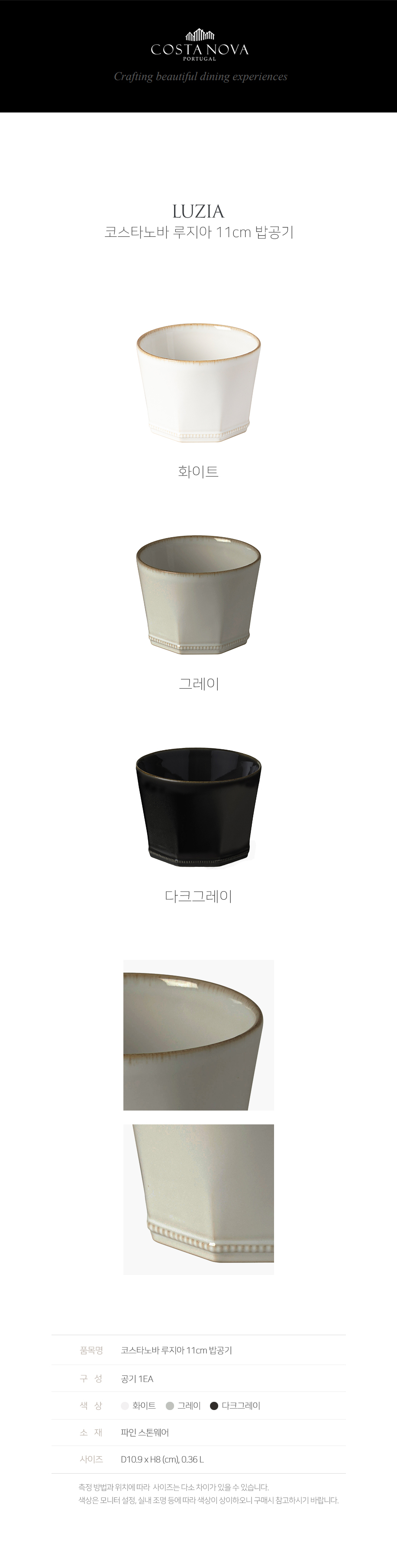 코스타노바(COSTA NOVA)는 세계적인 도자기 전문 기업 '그레스텔'이 1998년에 만든 포르투갈의 대표 브랜드입니다. 포르투갈의 우수한 천연 자원과 도자기 장인들에 의해 탄생하여, 삶의 가치와 가족 또는 친구들과 함께하는 행복을 담아 제작합니다. 지중해의 풍부한 감성으로 고객의 라이프 스타일을 더욱 풍요롭게 합니다.