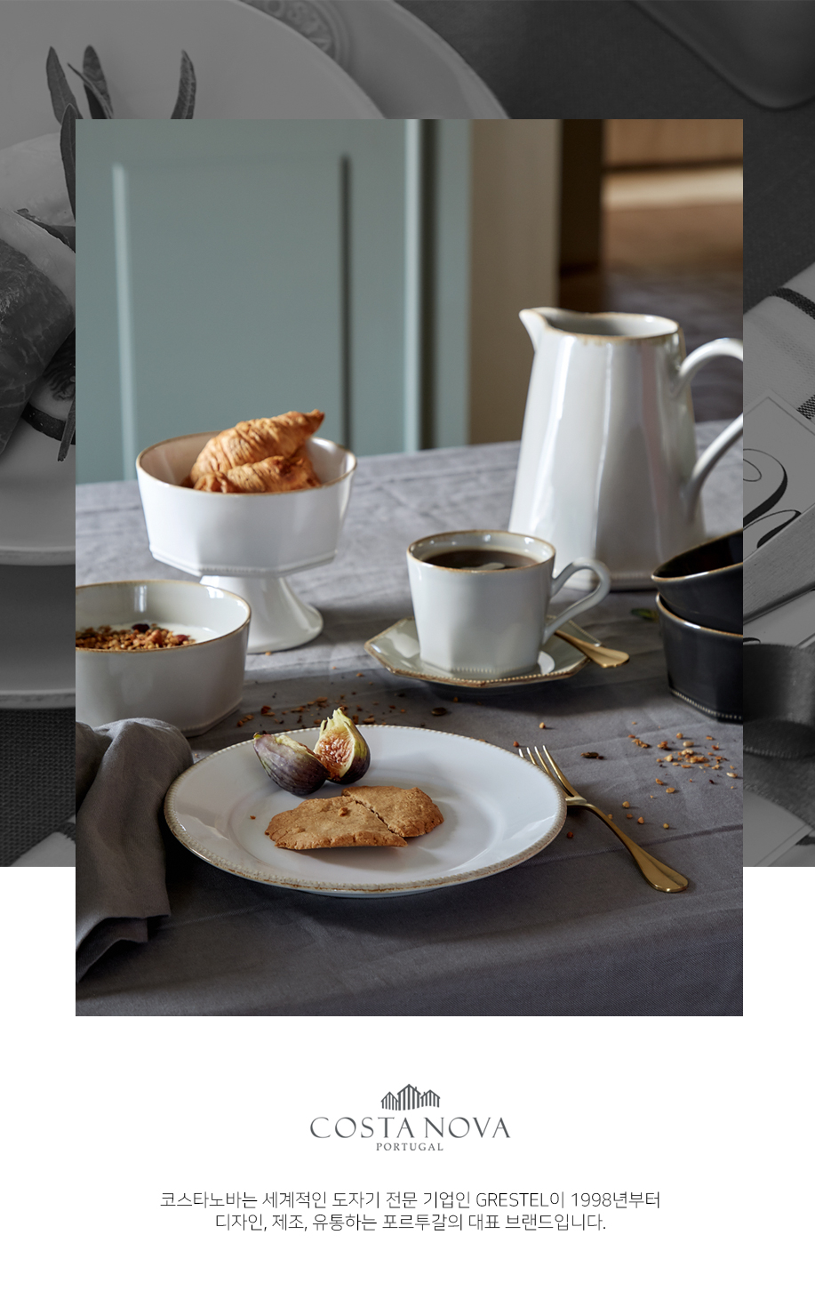 코스타노바(COSTA NOVA)는 세계적인 도자기 전문 기업 '그레스텔'이 1998년에 만든 포르투갈의 대표 브랜드입니다. 포르투갈의 우수한 천연 자원과 도자기 장인들에 의해 탄생하여, 삶의 가치와 가족 또는 친구들과 함께하는 행복을 담아 제작합니다. 지중해의 풍부한 감성으로 고객의 라이프 스타일을 더욱 풍요롭게 합니다.