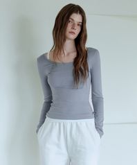 우먼즈 텐셀 슬림 발레리나 긴소매 티셔츠 [블루 그레이]