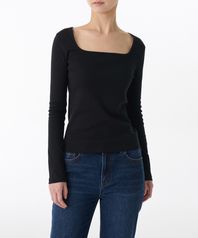 우먼즈 슬림 스퀘어 넥 긴소매 티셔츠 [블랙]