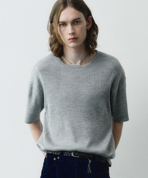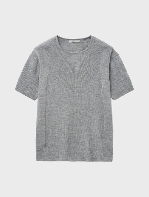 마이크로 리브드 스퀘어넥 하프 니트 (그레이)