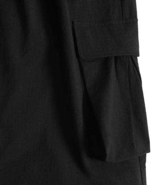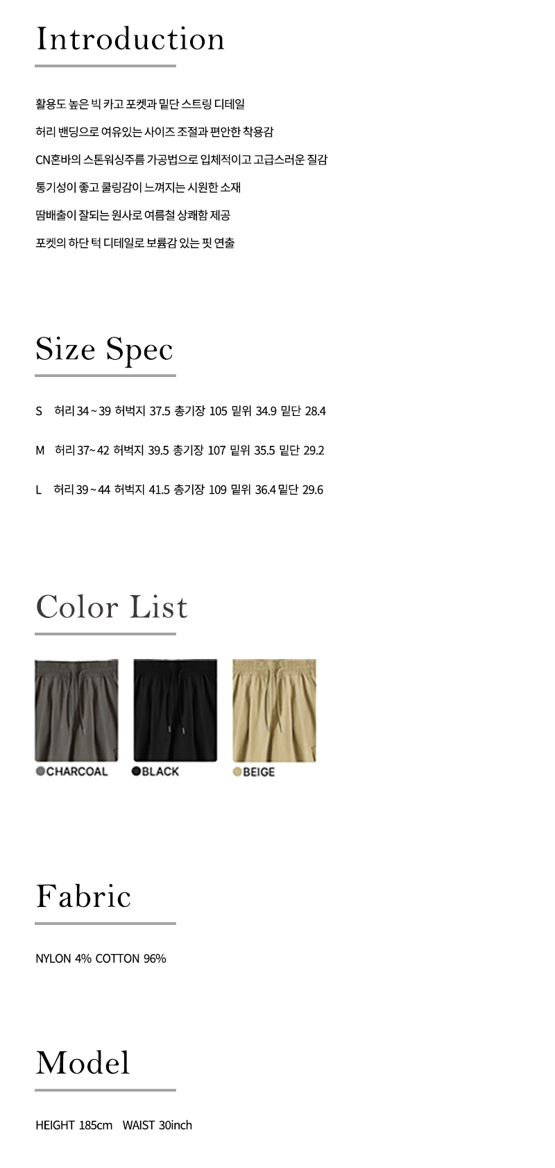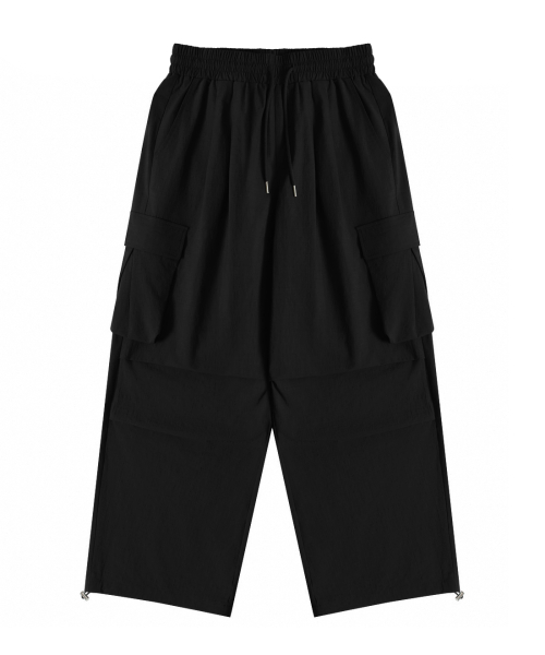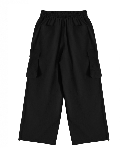 카고 턱 스트링 통와이드팬츠 [블랙]