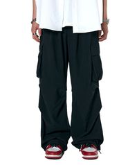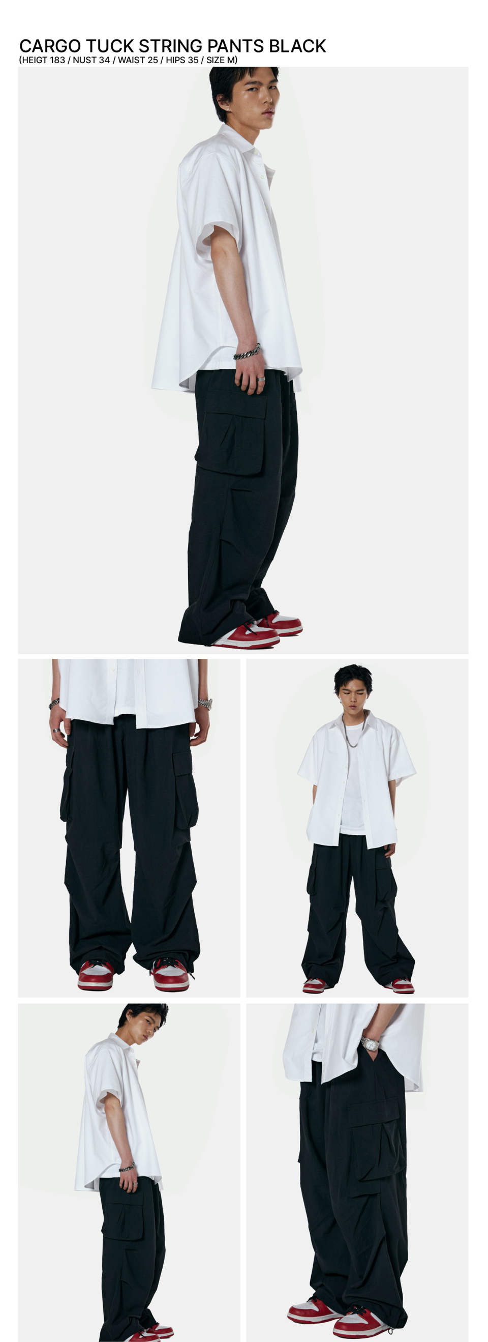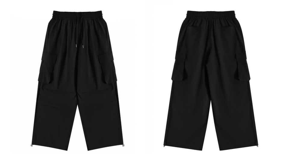 카고 턱 스트링 통와이드팬츠 [블랙]