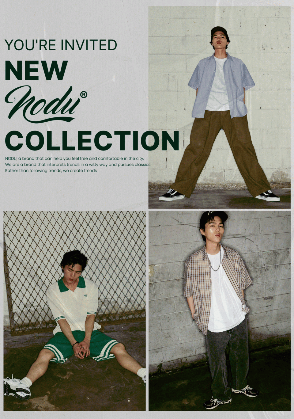 노드유(NODU)는 자유롭고 편안한 무드를 느낄 수 있는 브랜드가 되기 위해 근본적인 클래식을 추구하면서 트렌드를 재치 있게 해석하는 남성 캐주얼&포멀 브랜드입니다.