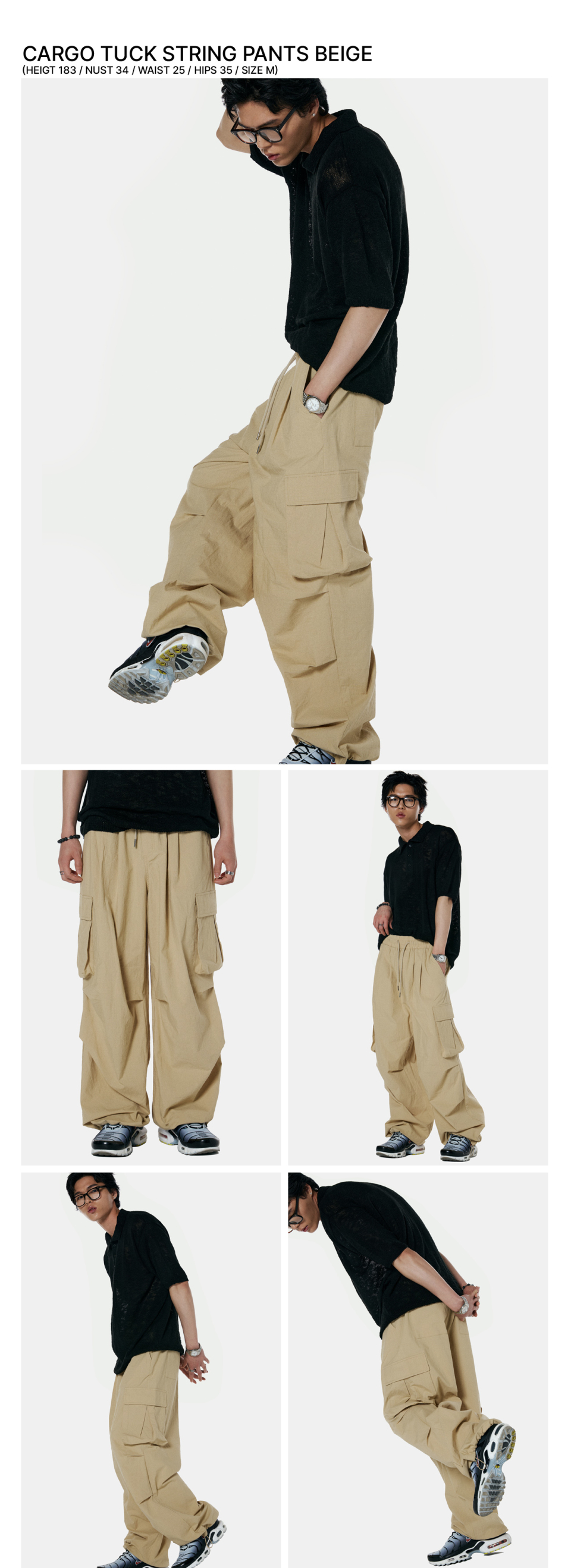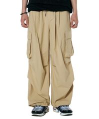 카고 턱 스트링 통와이드팬츠 [베이지]