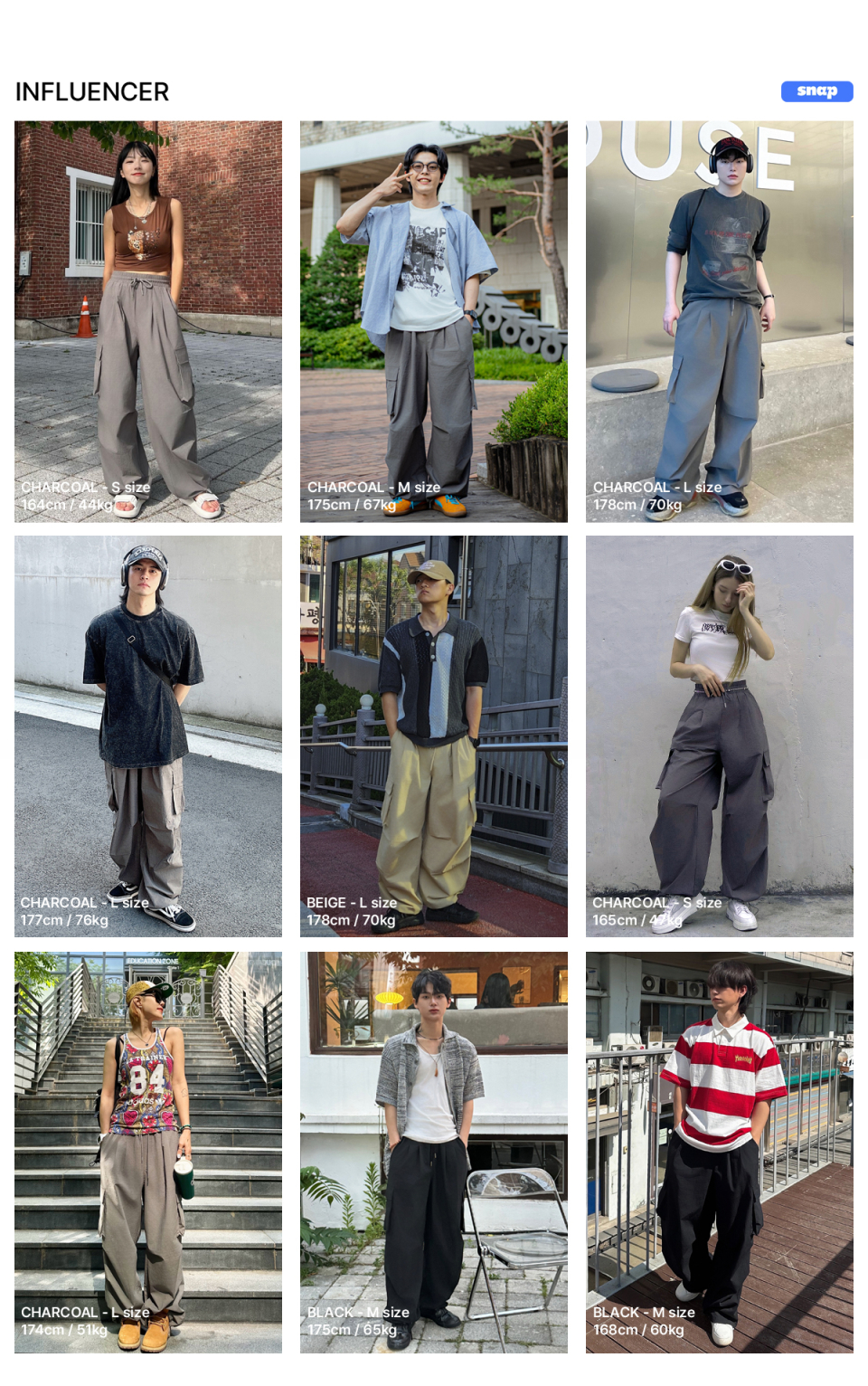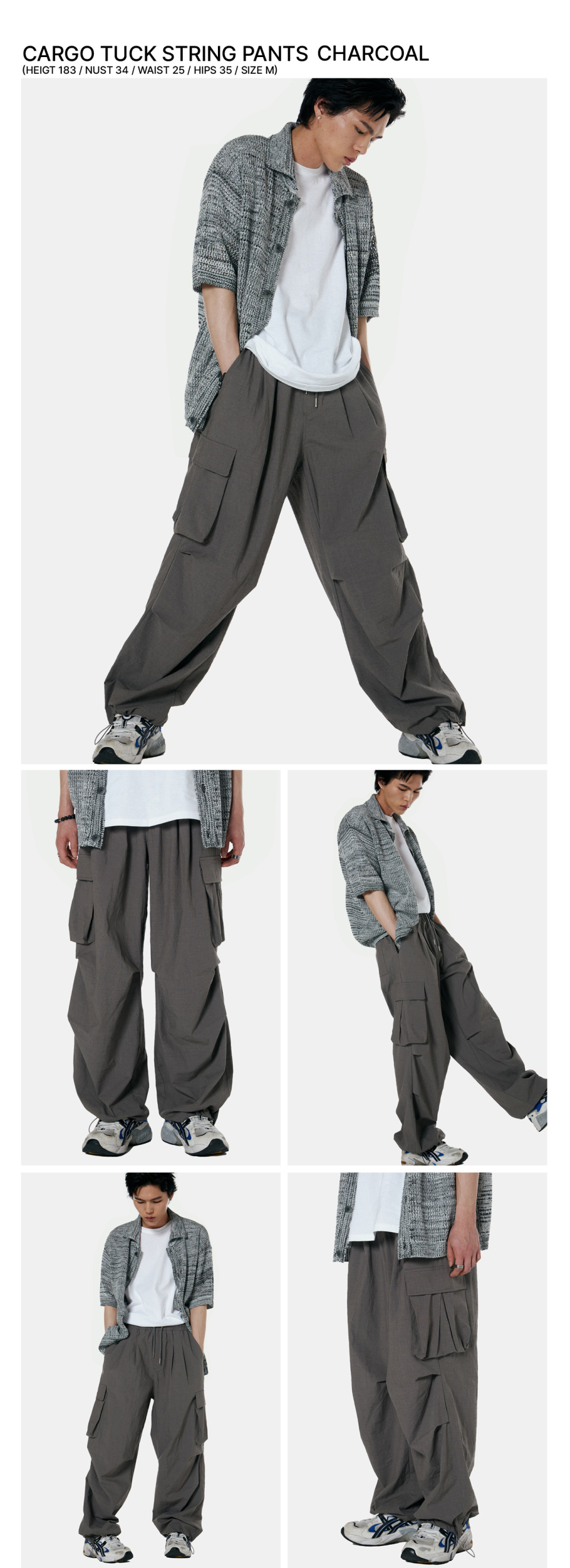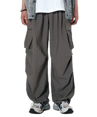카고 턱 스트링 통와이드팬츠 [차콜]