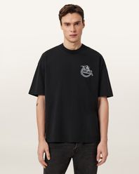 독특한 스티치 워크가 돋보이는 오버사이즈 티셔츠. 유기농 면 소재로 제작되었으며, 반소매와 크루넥 디자인입니다. 친환경 머드 염색으로 마감하였으며, 골지 넥밴드로 완성되었습니다.