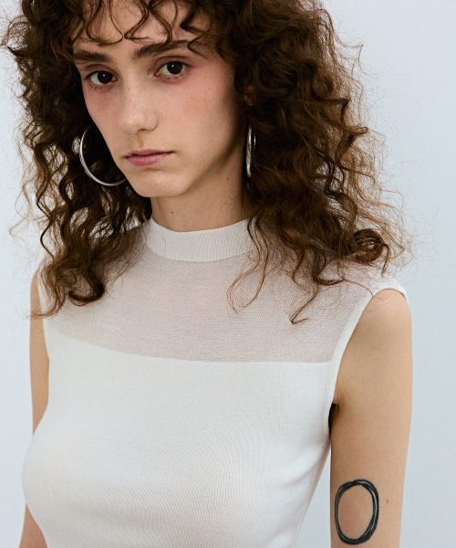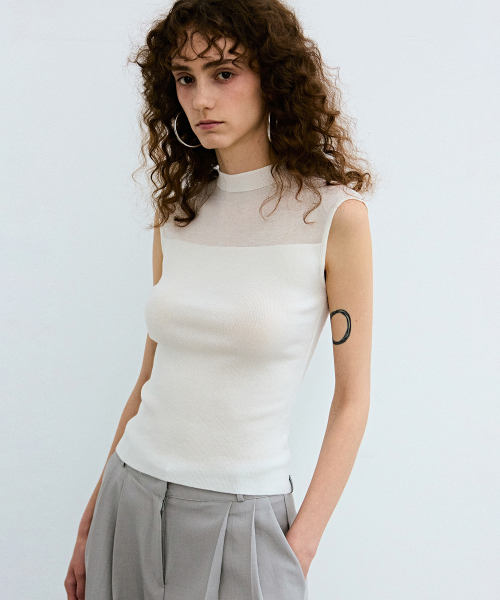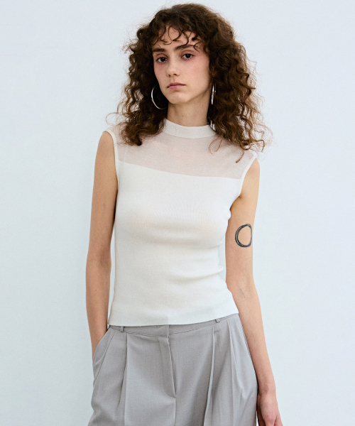 One-shoulder Scarf Sleeveless Knit (ivory)