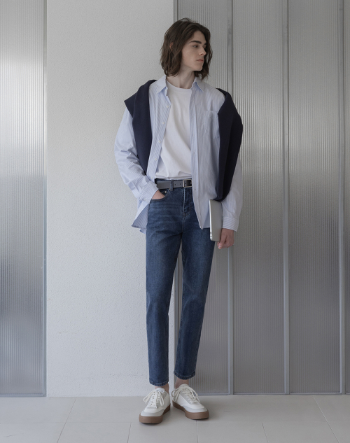 [쿨탠다드] 슬림 크롭 데님 팬츠 [스카이 블루]