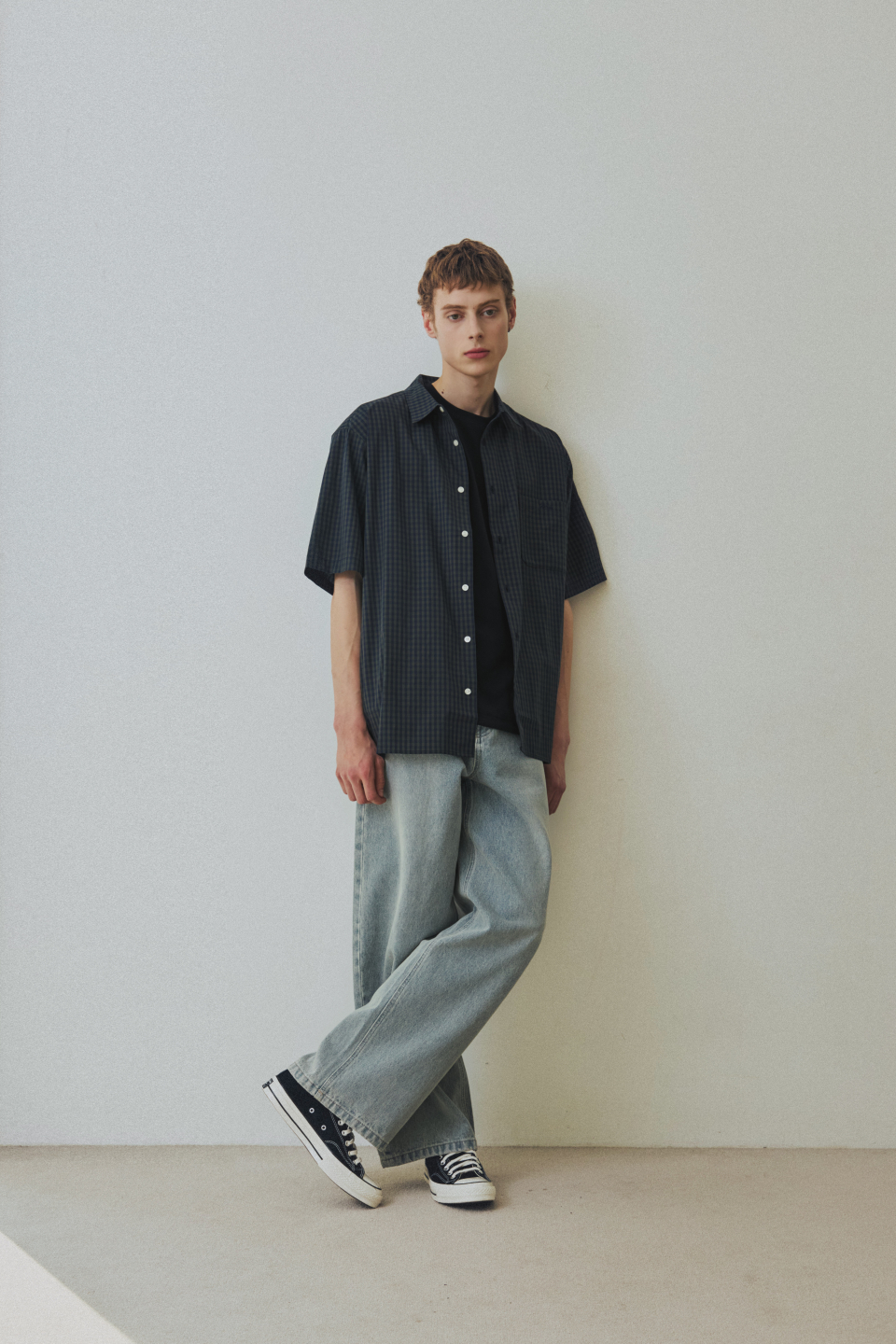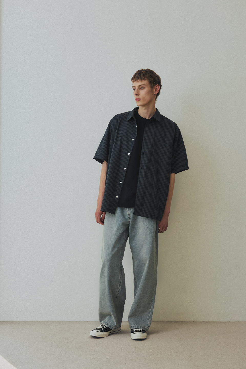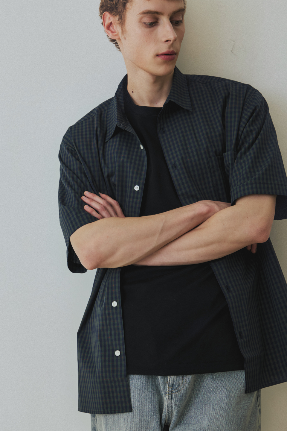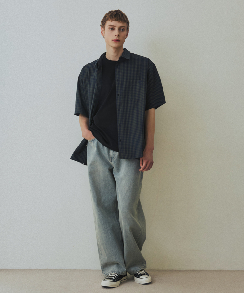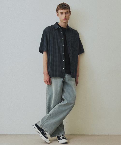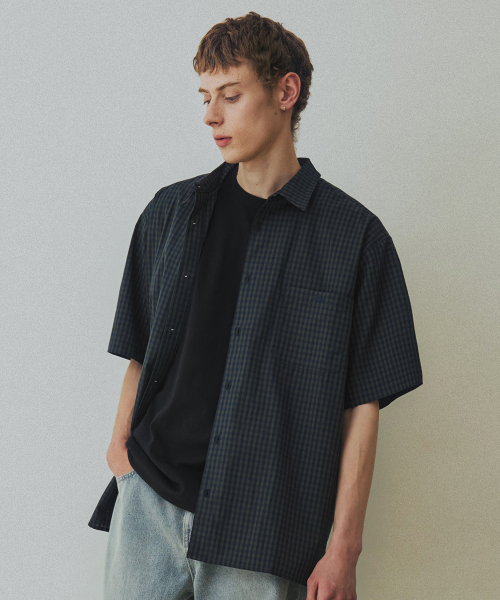 체크 박시 하프 스트릿 셔츠 [그린]