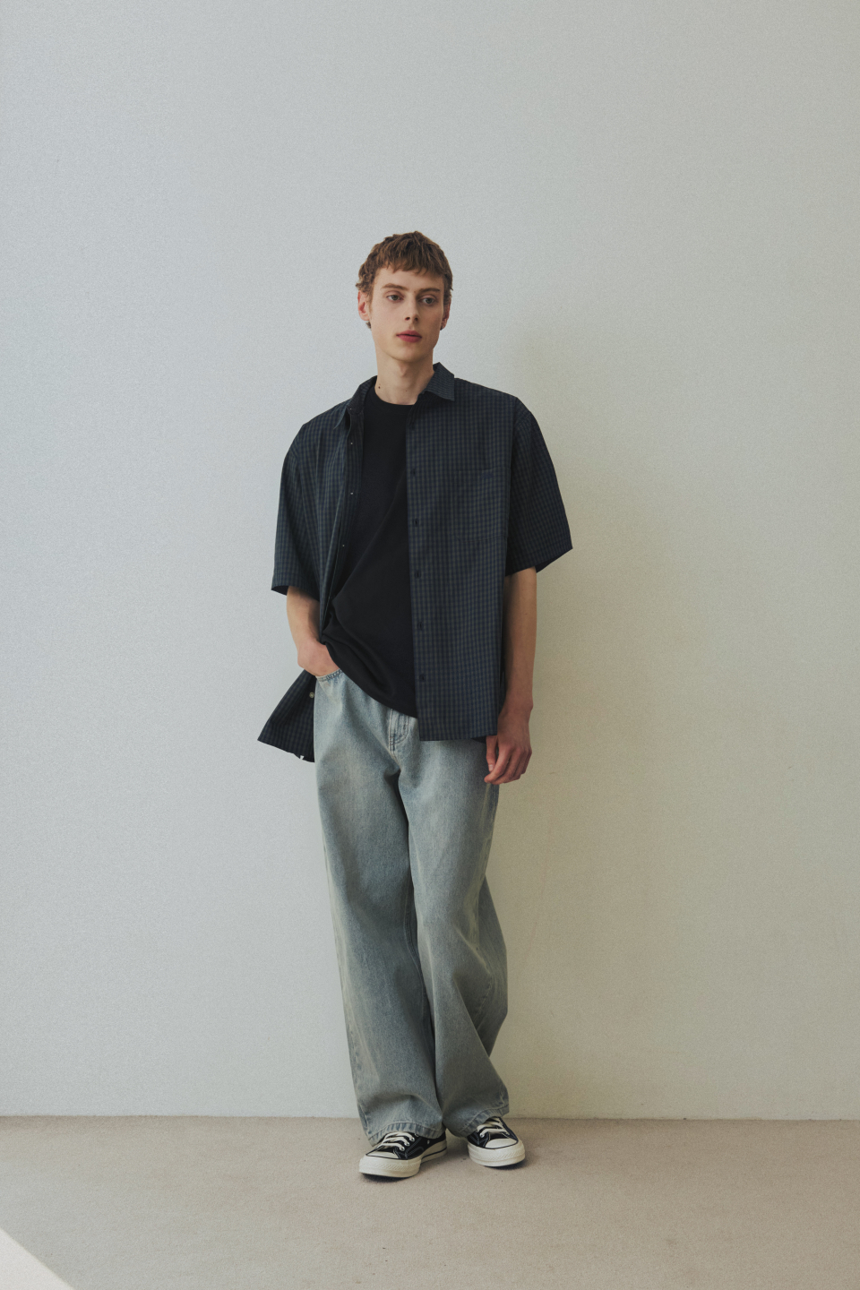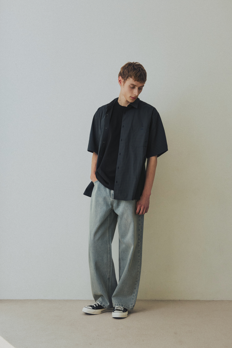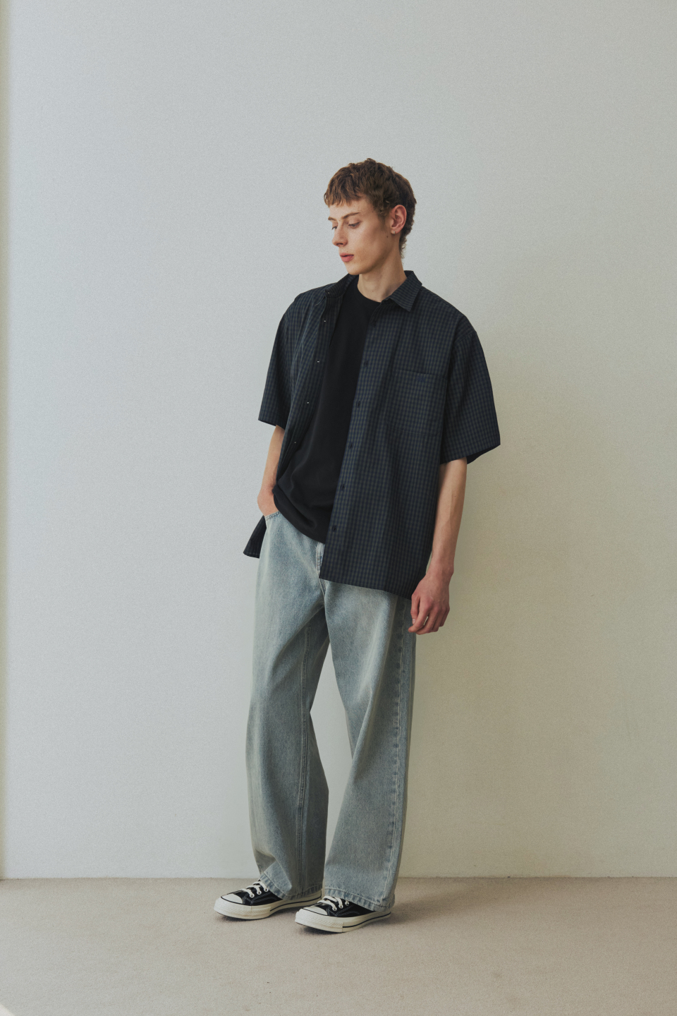 체크 박시 하프 스트릿 셔츠 [그린]