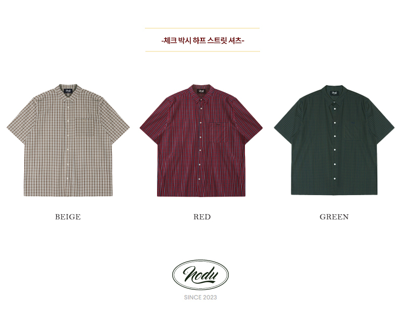 체크 박시 하프 스트릿 셔츠 [레드]