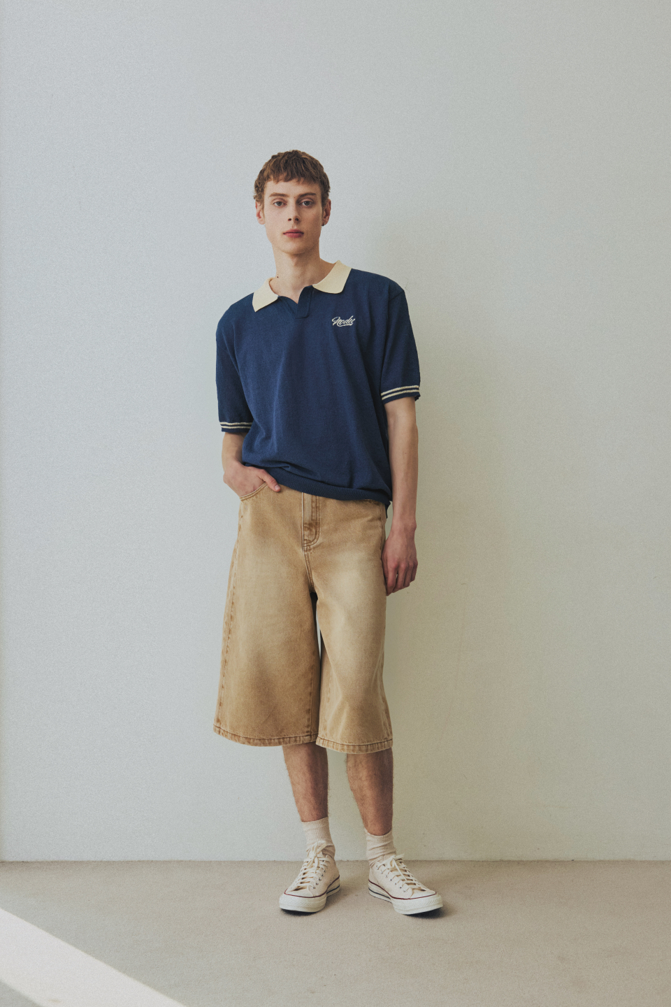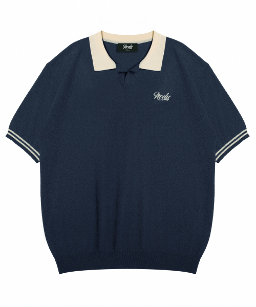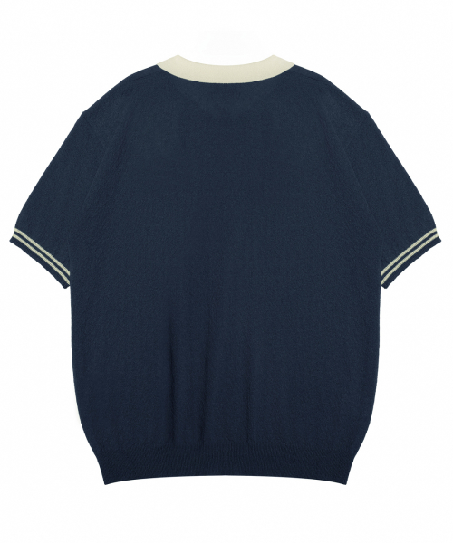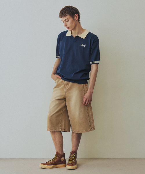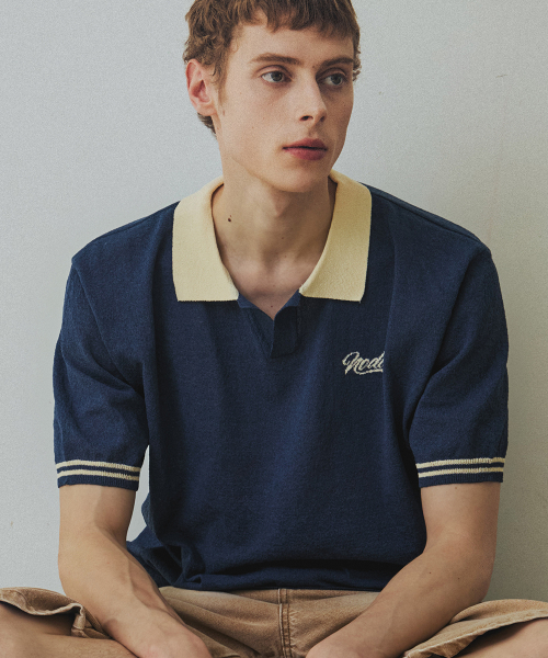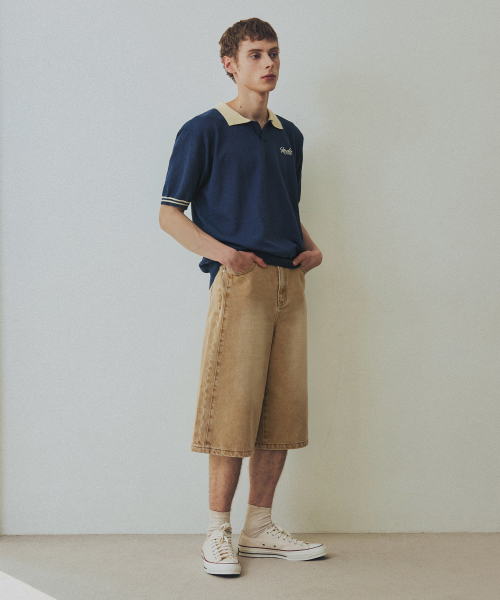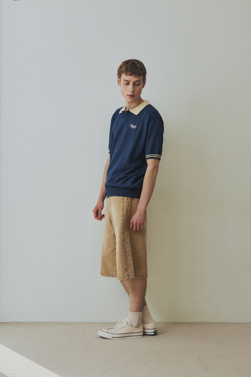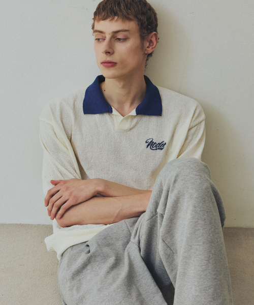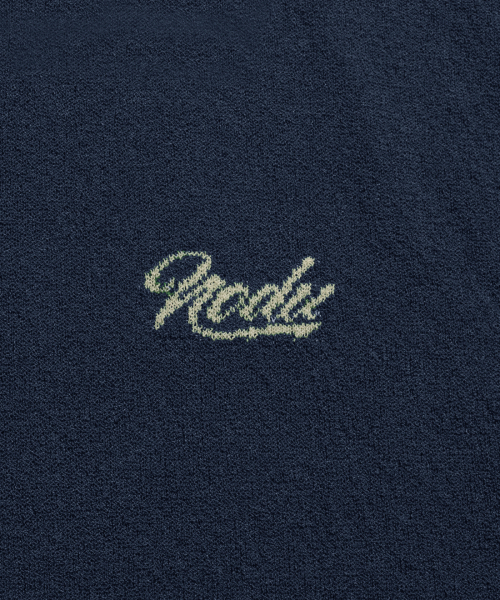 레더 패치 데님 카라 럭비 맨투맨_네이비