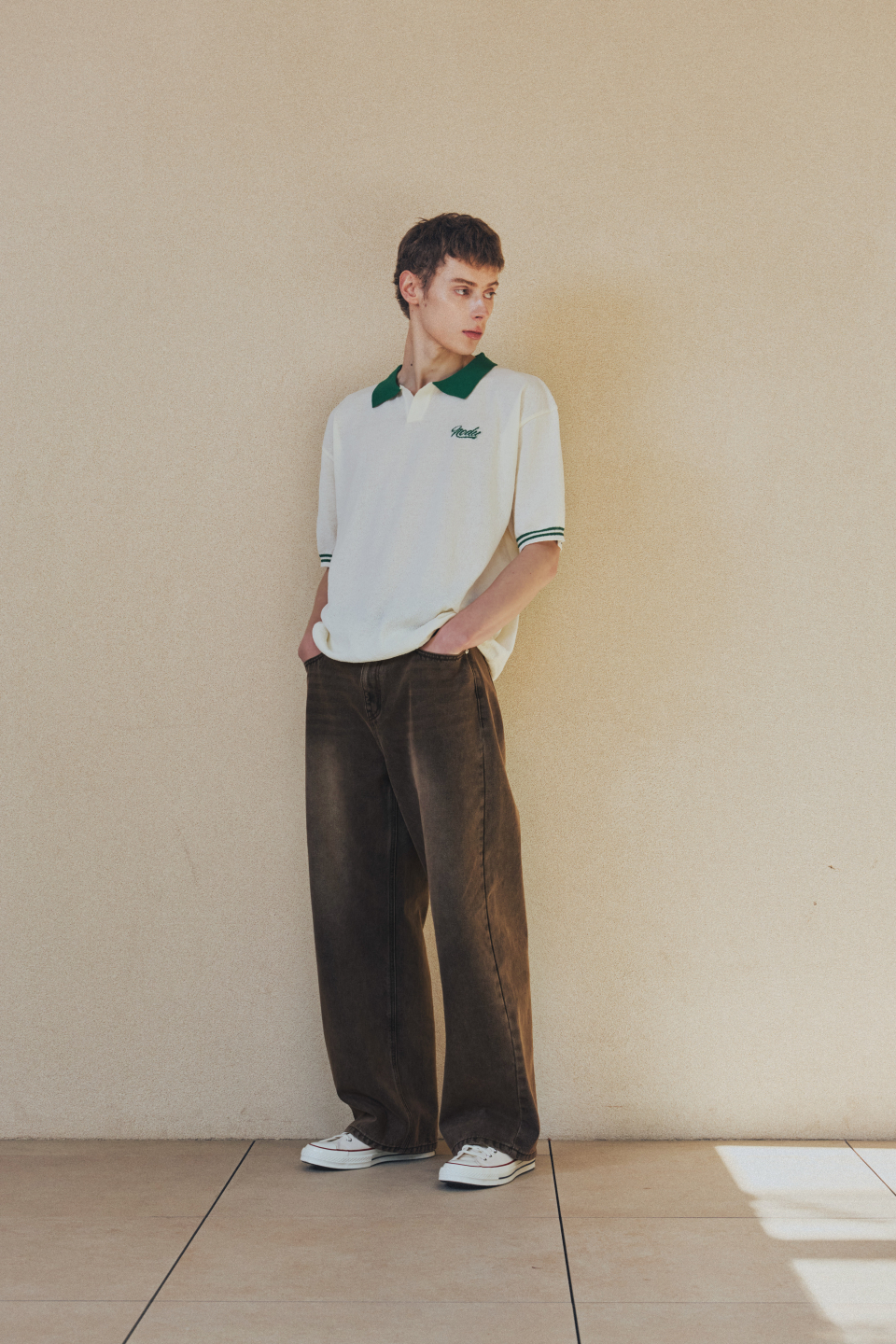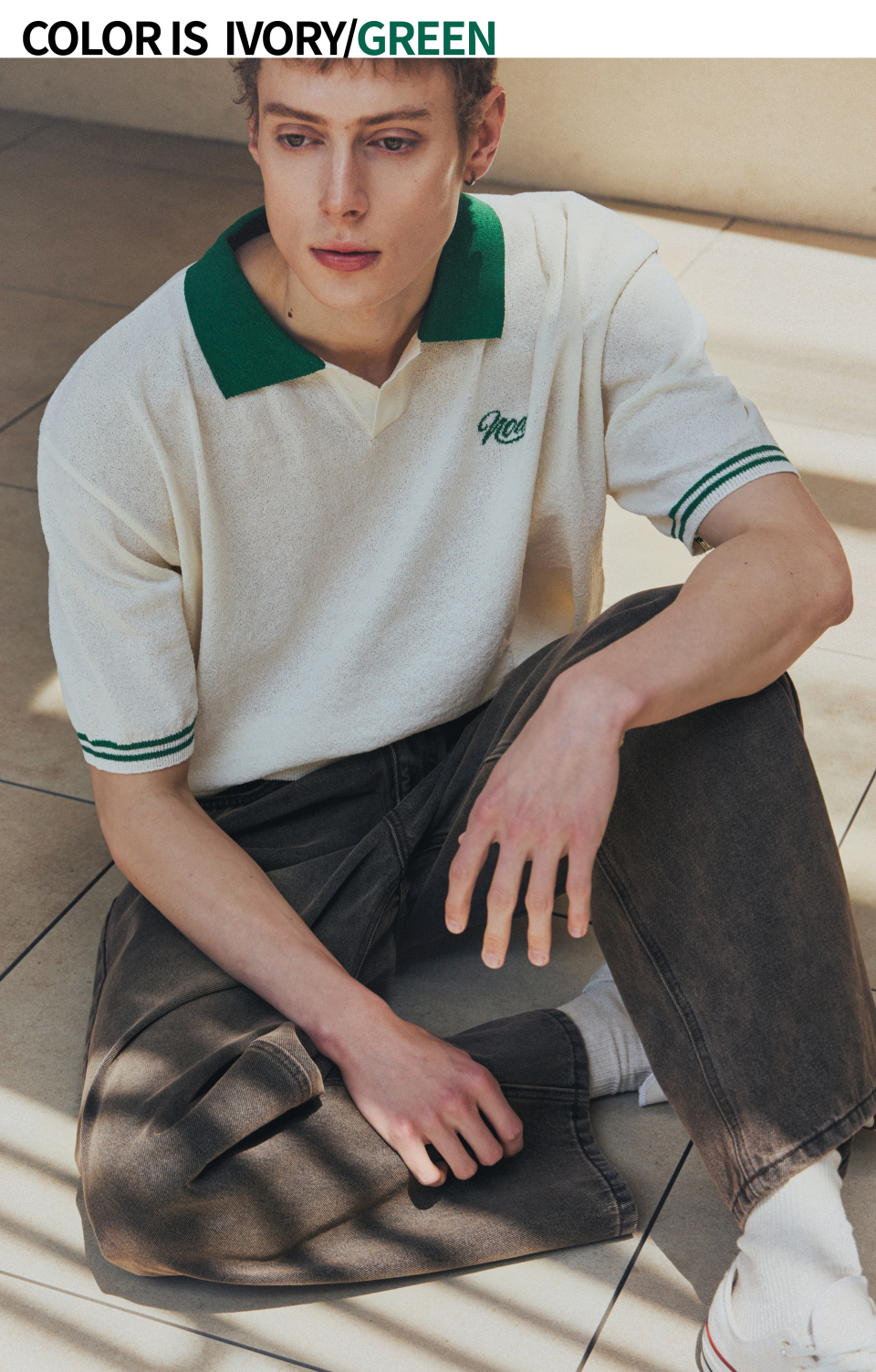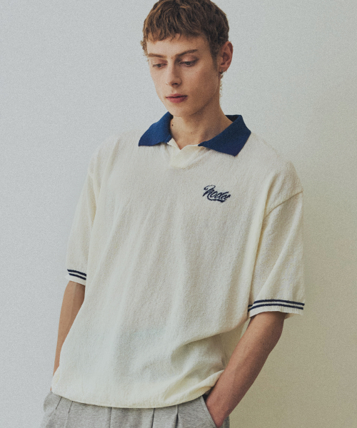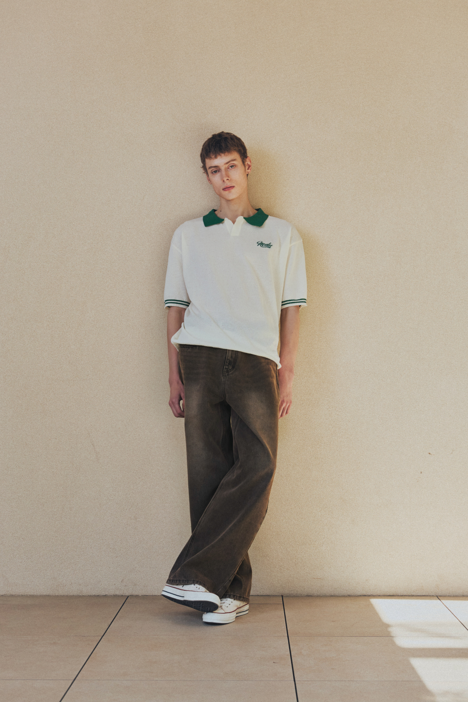 레더 패치 데님 카라 럭비 맨투맨_네이비