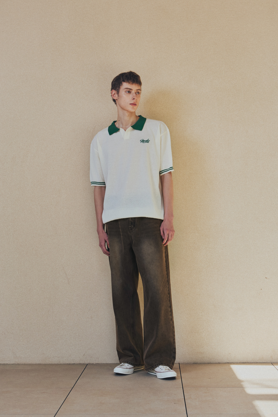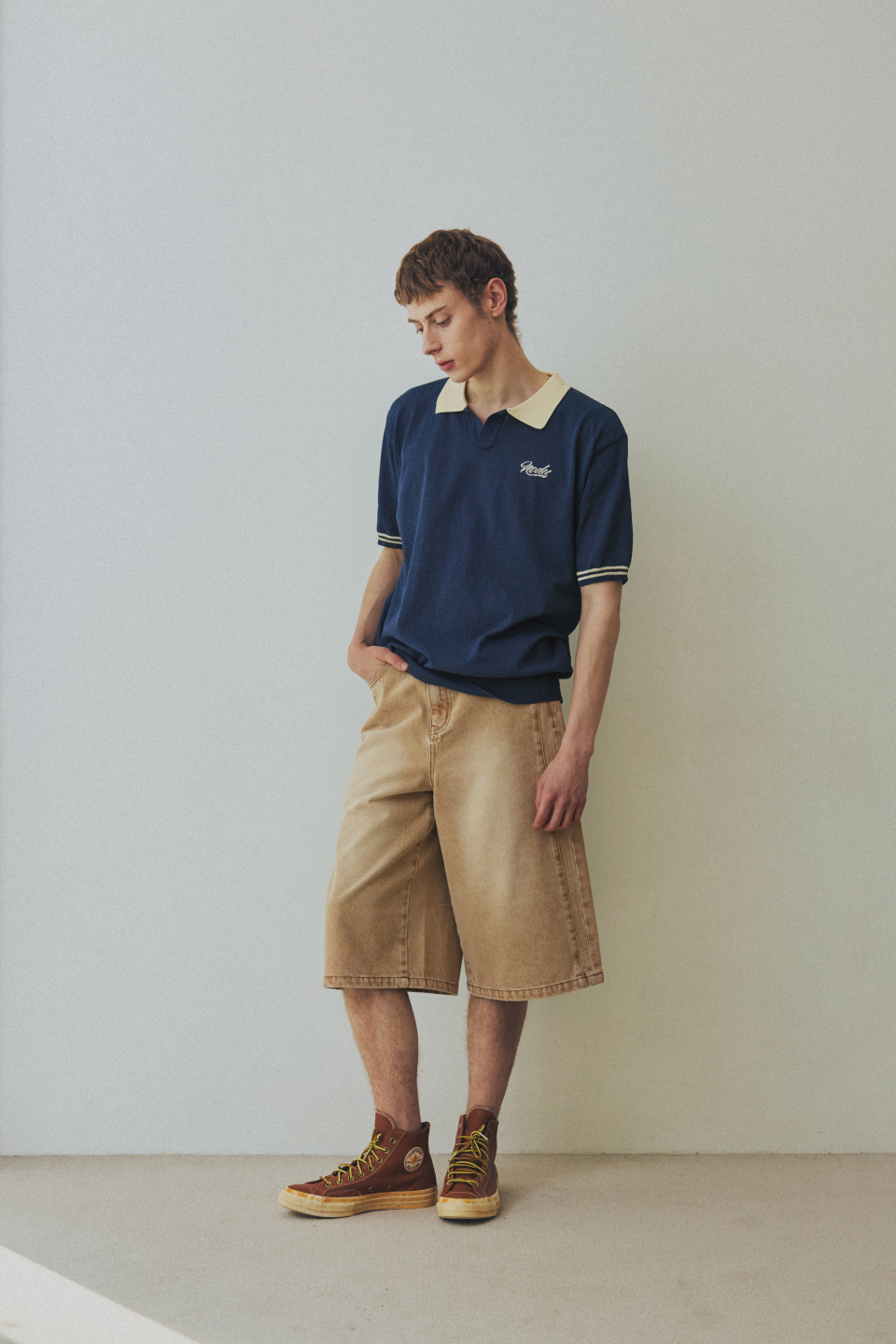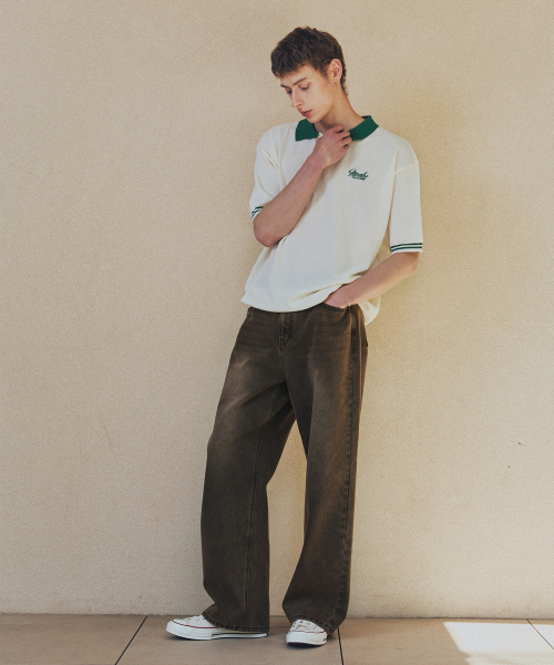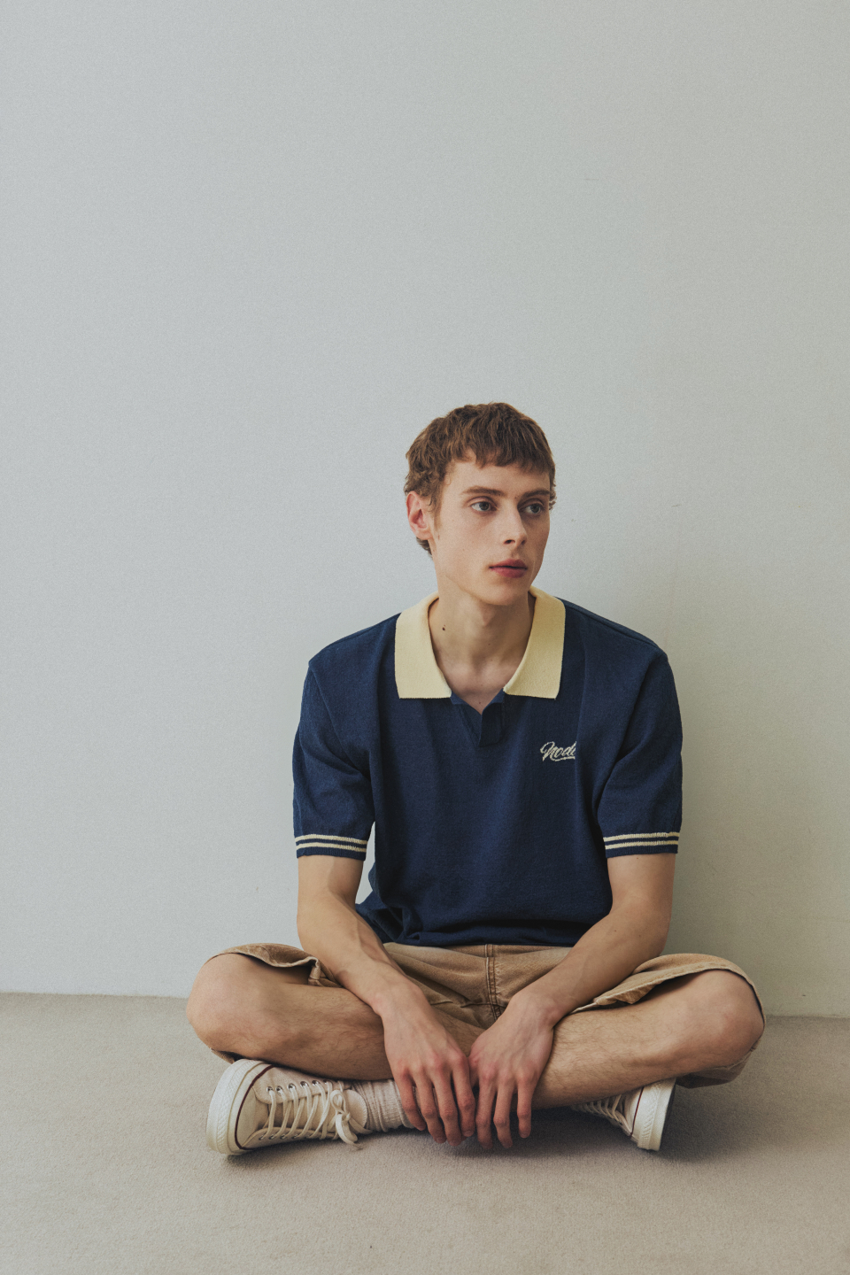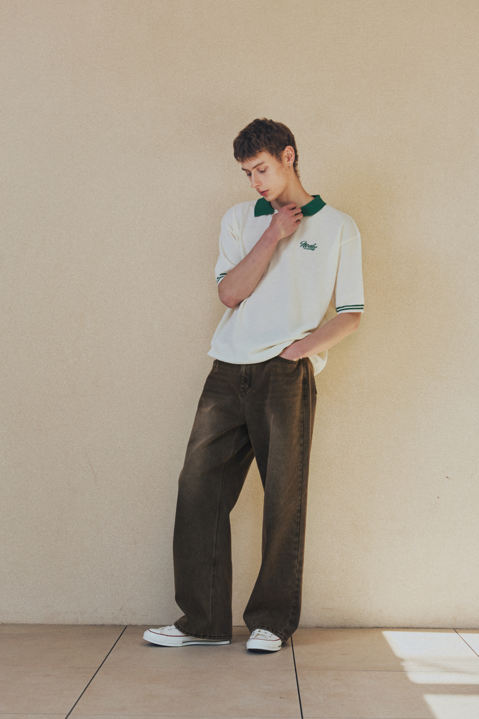 레더 패치 데님 카라 럭비 맨투맨_네이비