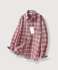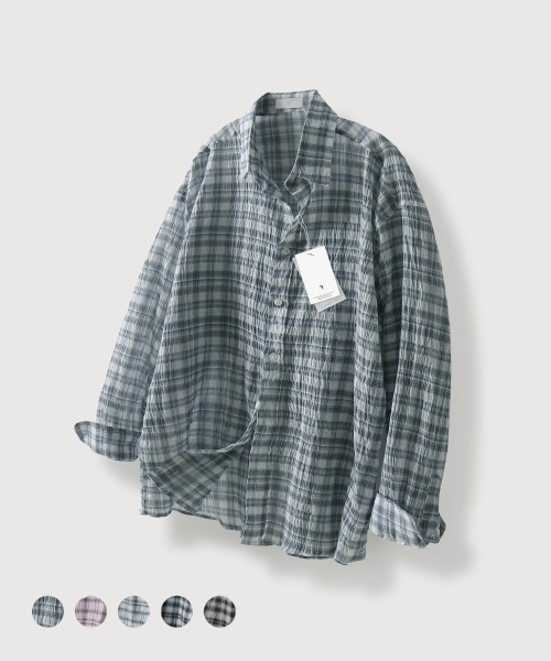 컷 오프 그런지 체크 셔츠 - 스카이 블루