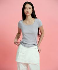 우먼즈 슬림 스쿱 넥 티셔츠 [미디엄 그레이]