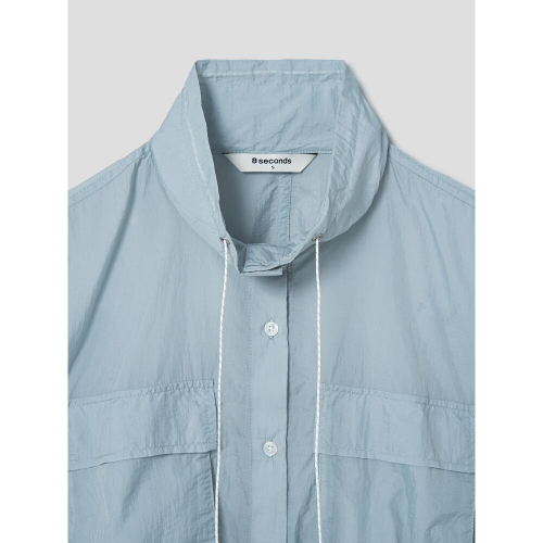 부드럽고 탄탄한 면 나일론 혼방 소재로 제작하여 간절기에 아우터처럼 착용할 수 있는 셔츠입니다. 적당히 짧은 기장으로 캐주얼한 멋을 더했으며, 끈 디테일이 있어 실루엣을 섬세하기 조절할 수 있습니다. 다양한 하의와 함께 매치하여 편안하면서도 멋스러운 코디를 연출하기 좋습니다.