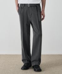 헤링본 벨티드 세미 와이드 슬랙스 [GREY]