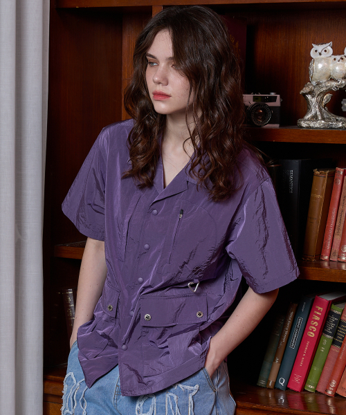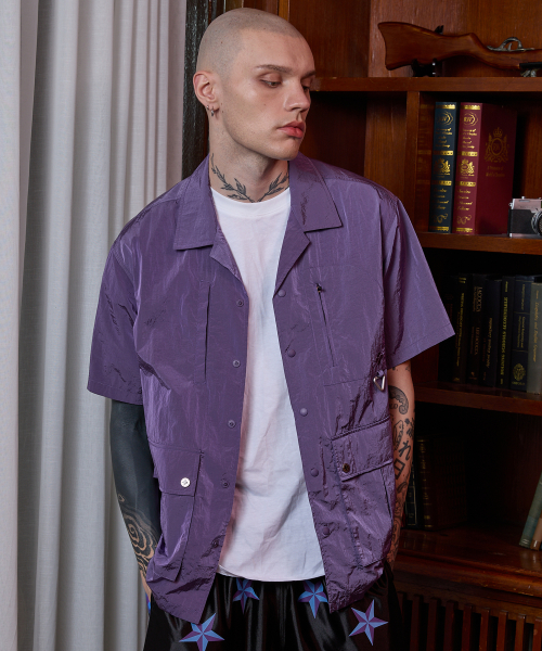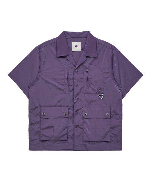 멀티 포켓 유틸리티 반팔 셔츠 퍼플