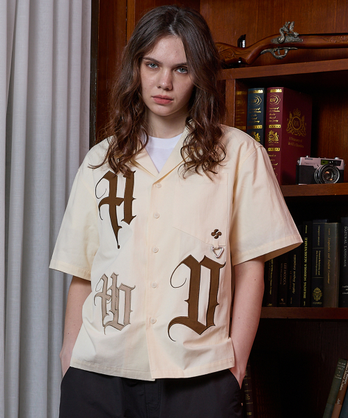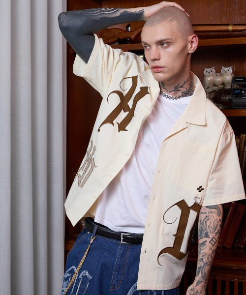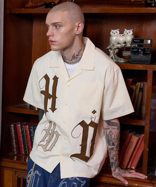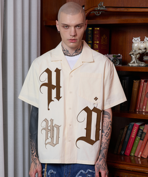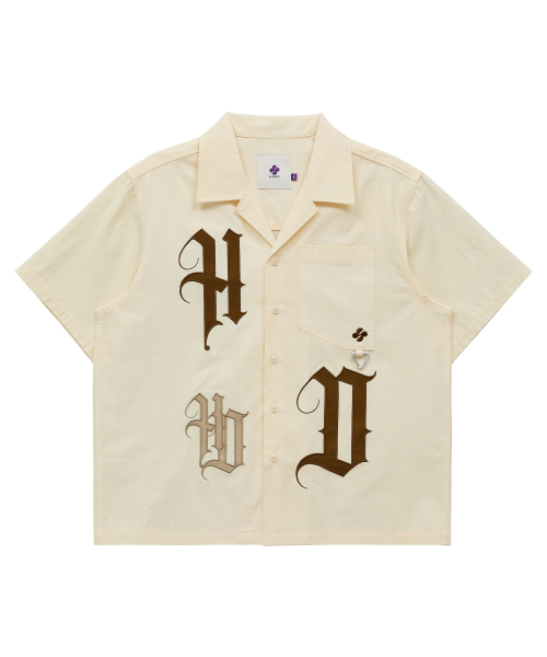 HD 아플리케 오픈 카라 반팔 셔츠 아이보리