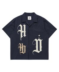 HD 아플리케 오픈 카라 반팔 셔츠 네이비