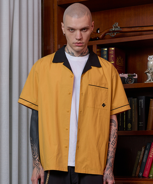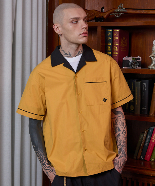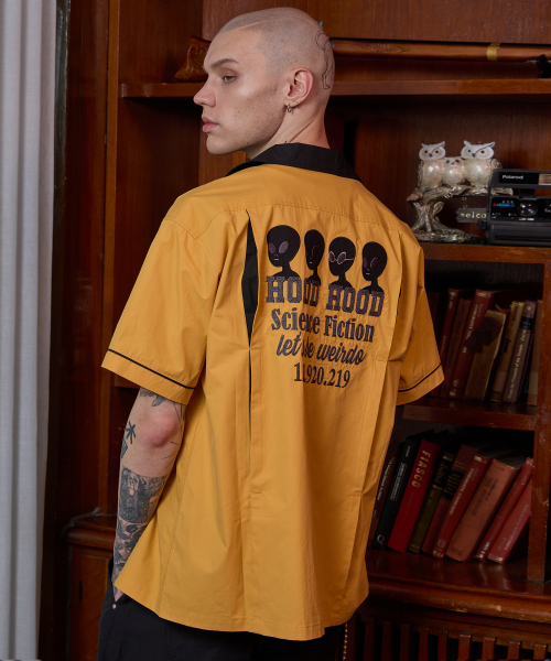 에일리언 아트웍 볼링 반팔 셔츠 옐로우