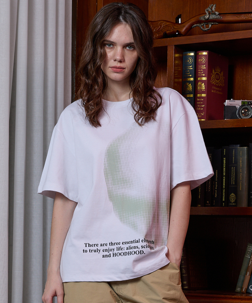 빅 페이스 에일리언 그래픽 반팔티셔츠 화이트