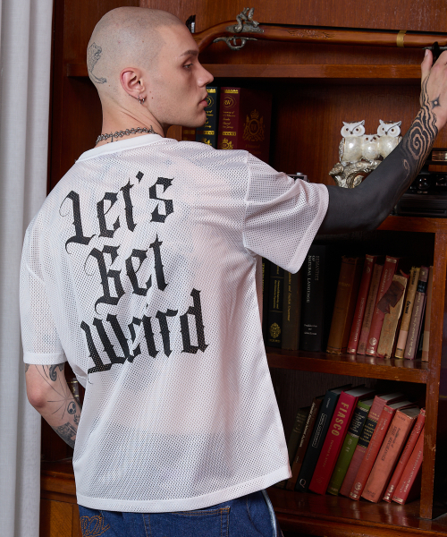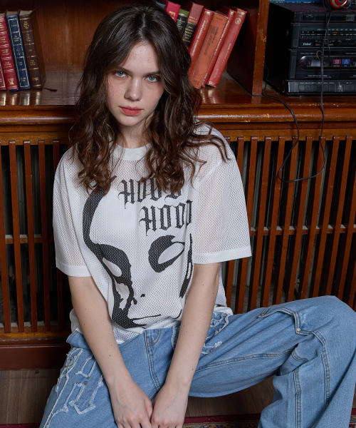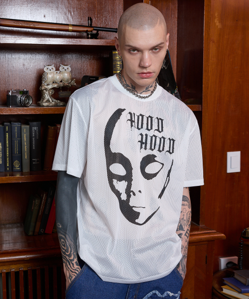 에일리언 그래픽 메쉬 반팔티셔츠 화이트