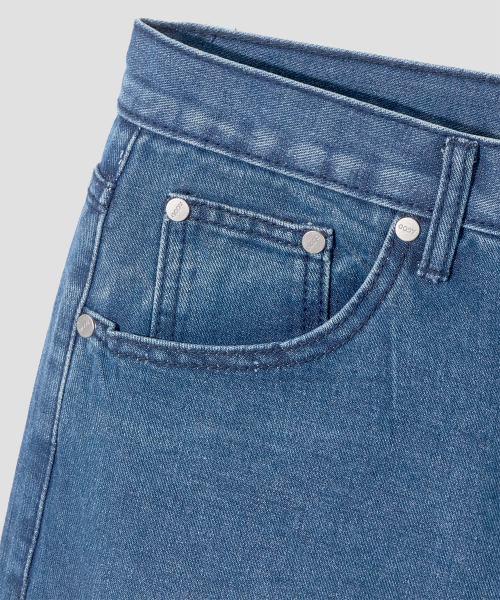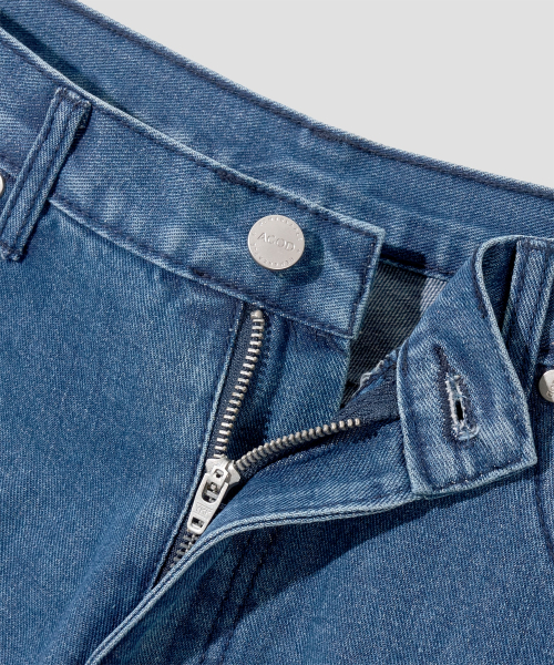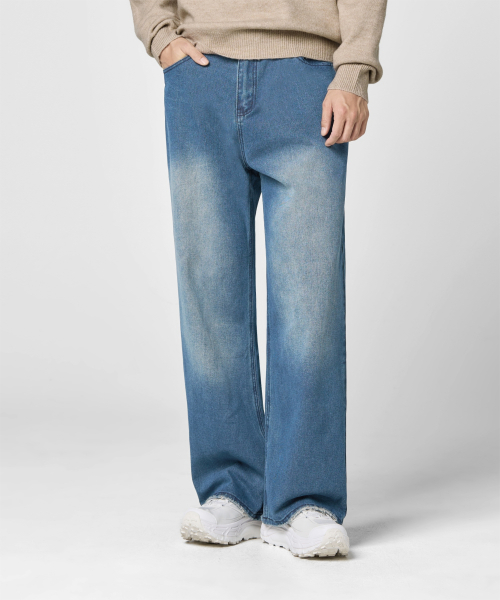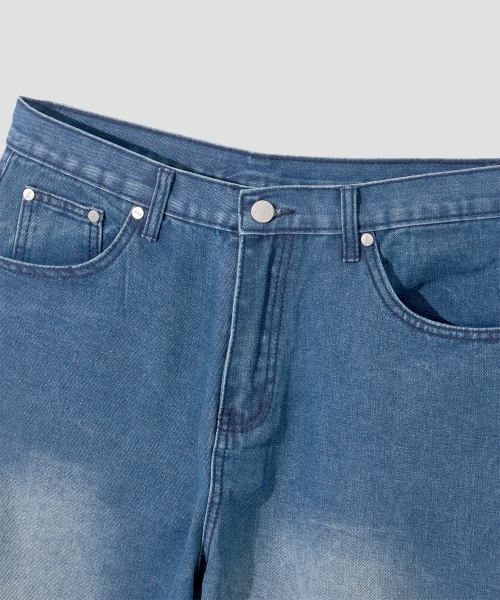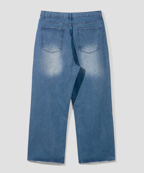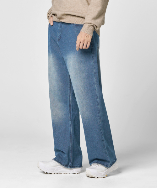 와이드 워싱 데님 팬츠 [미디엄 블루]