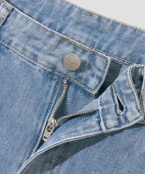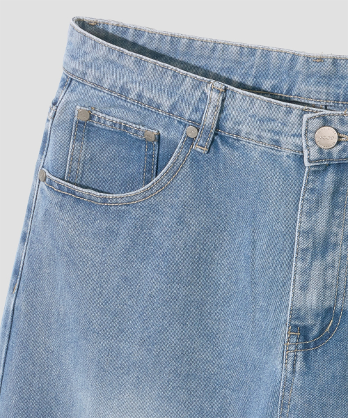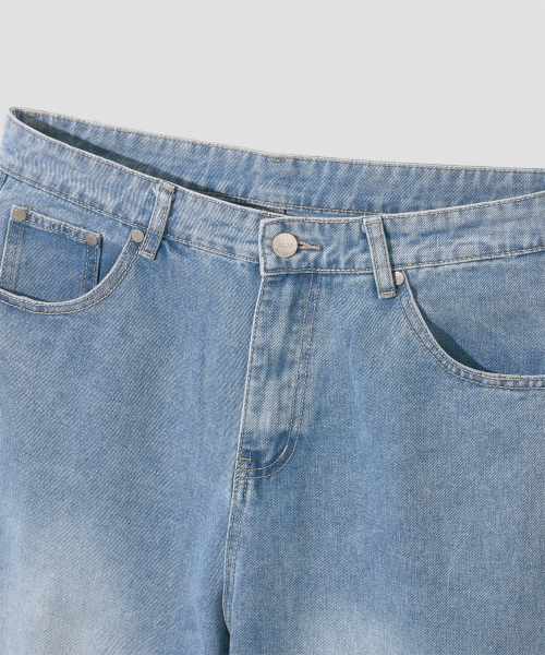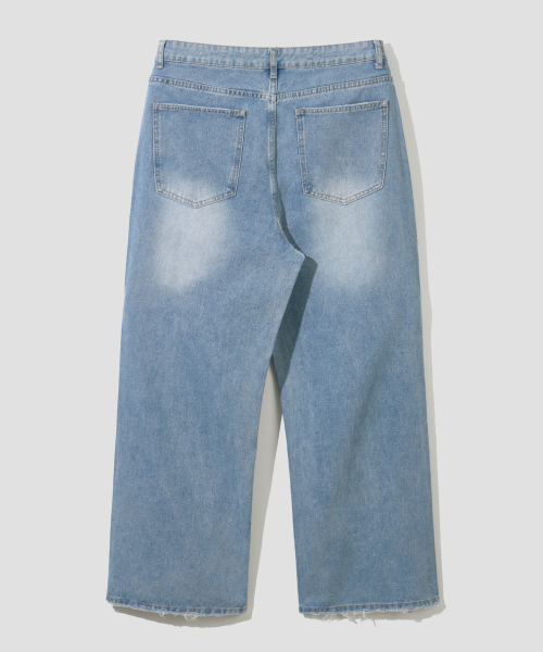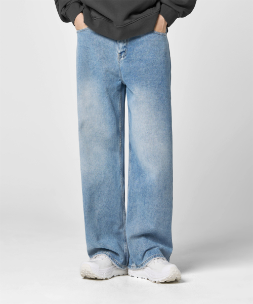 와이드 워싱 데님 팬츠 [미디엄 블루]