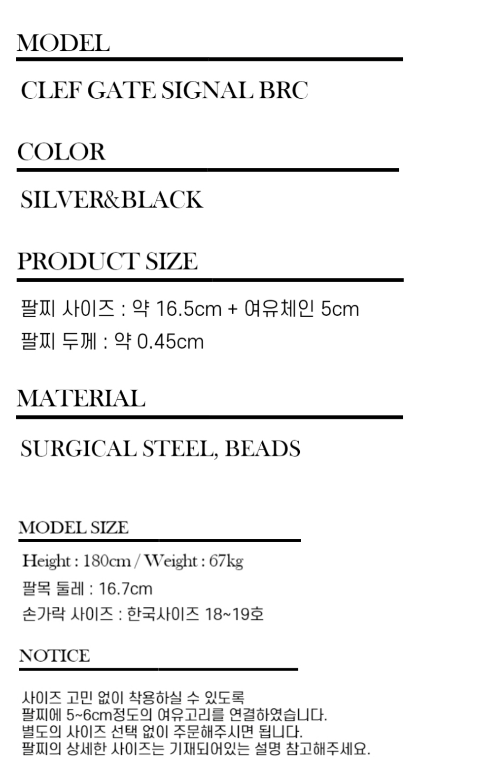 남자 팔찌 블랙 비즈 써지컬스틸 CLEF GATE SIGNAL