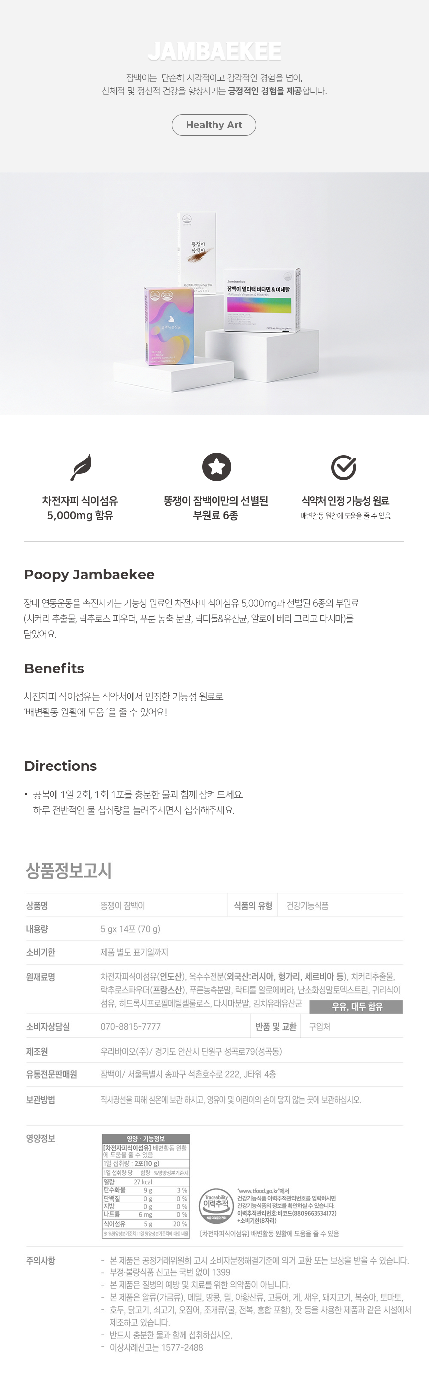 잠백이(JAMBAEKEE)는 국내 최대 헬스 커뮤니티를 기반으로 건강즙, 건강기능식품, 식품, 헬스보충제 등 다양한 제품을 제조 및 판매하는 브랜드입니다. 대한민국 국민들이 건강한 삶을 보내실 수 있도록 사명을 가지고 있습니다.