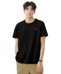 [적립금 5%] 커스텀 슬림 핏 코튼 티셔츠 - 블랙