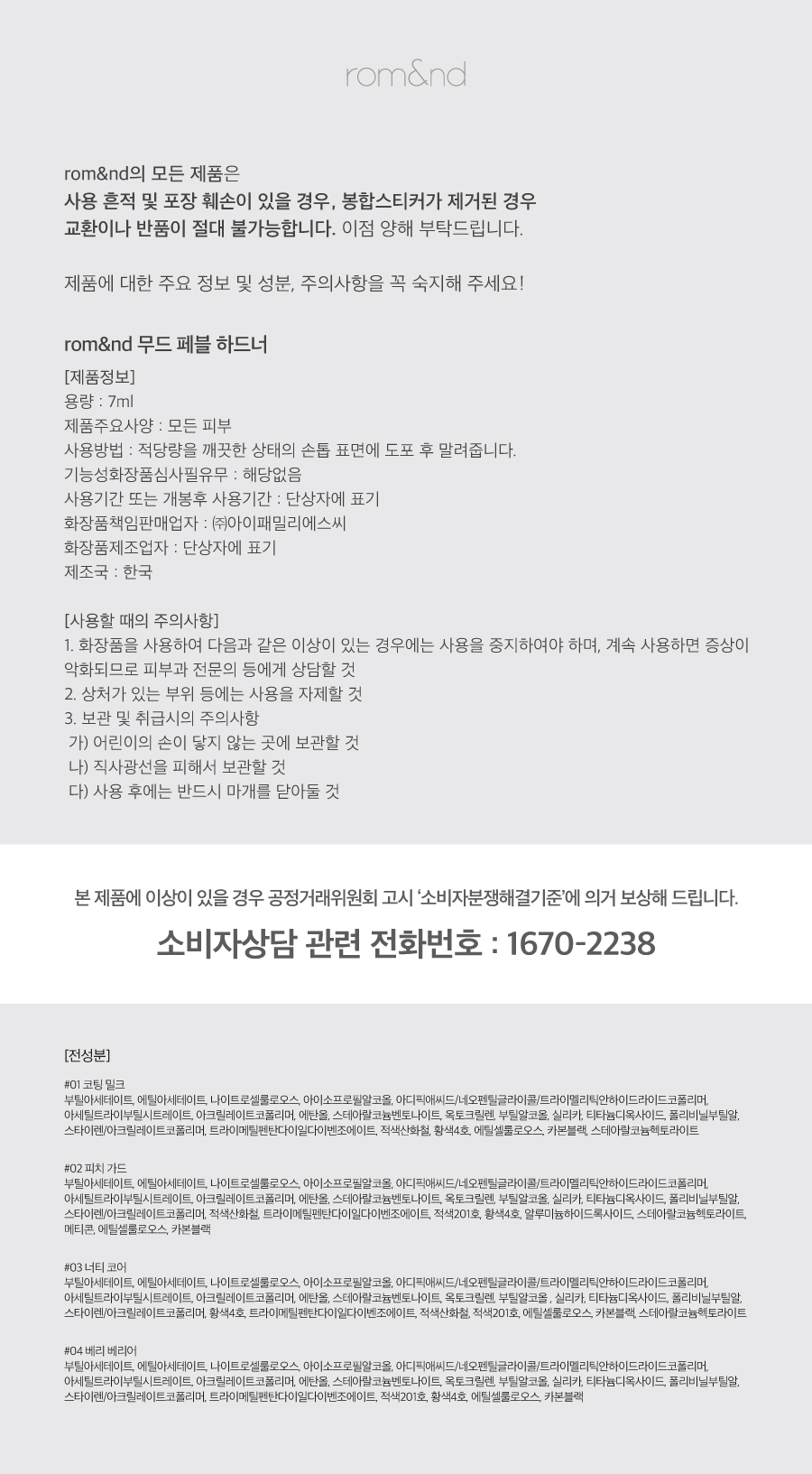 롬앤(ROM&ND)은 화장품에 푹 빠지는 즐거움을 전합니다. 코덕(코스메틱 덕후)들의 감각과 취향을 다채로운 컬러와 스토리로, 일상 속 설렘과 몰입의 경험을 선사하는 색조 전문 브랜드입니다.