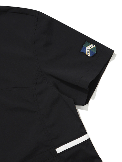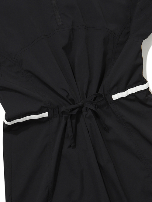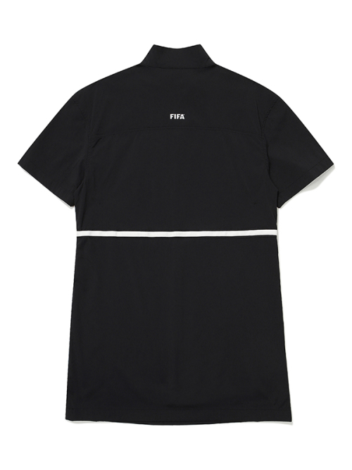 우먼즈 슬릿 넥 레이스 트림 폴로 원피스 [블랙/아이보리]
