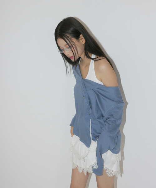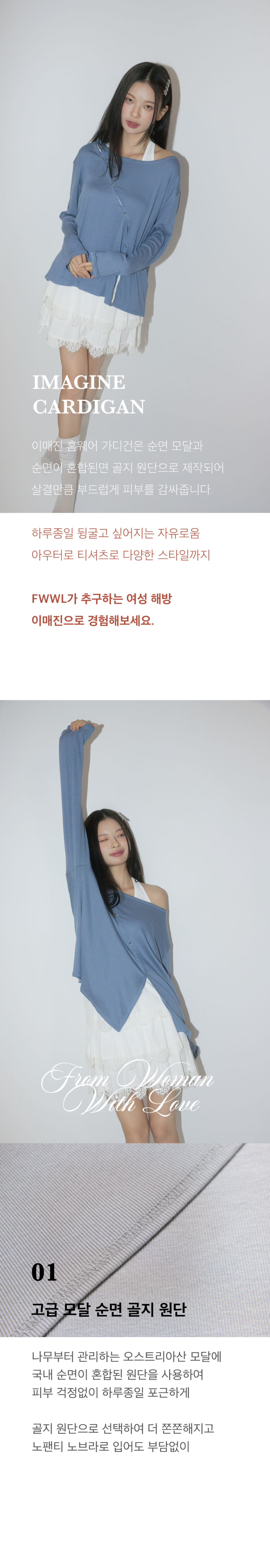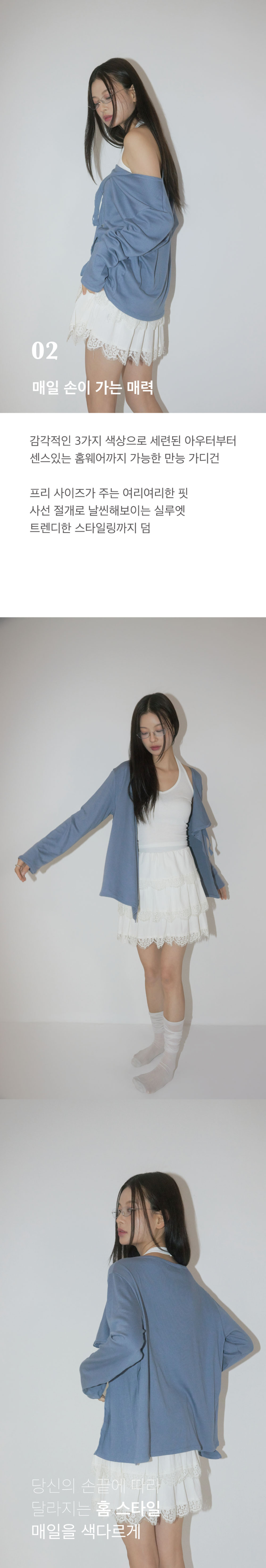 이매진 순면 모달 컷아웃 골지 가디건 - 블루